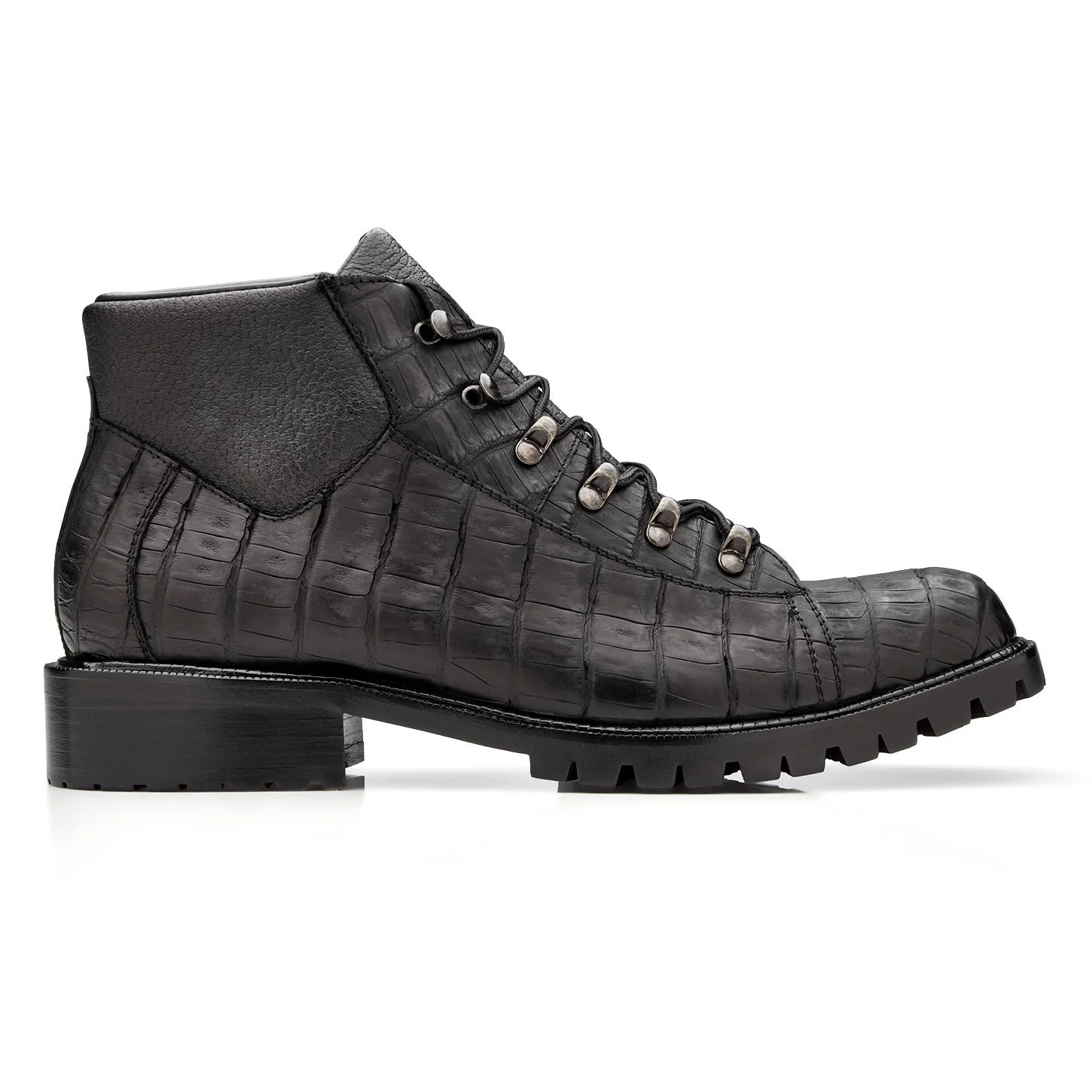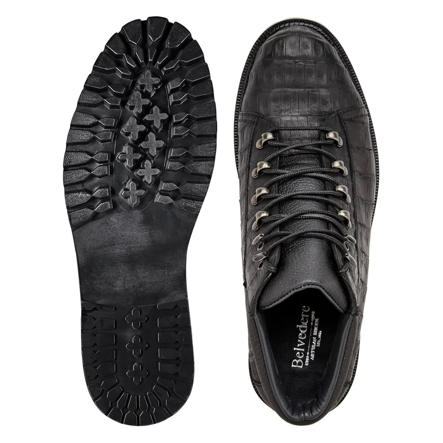 Belvedere Genuine Caiman Crocodile Pebble Italian Leather Combat Boots CB06