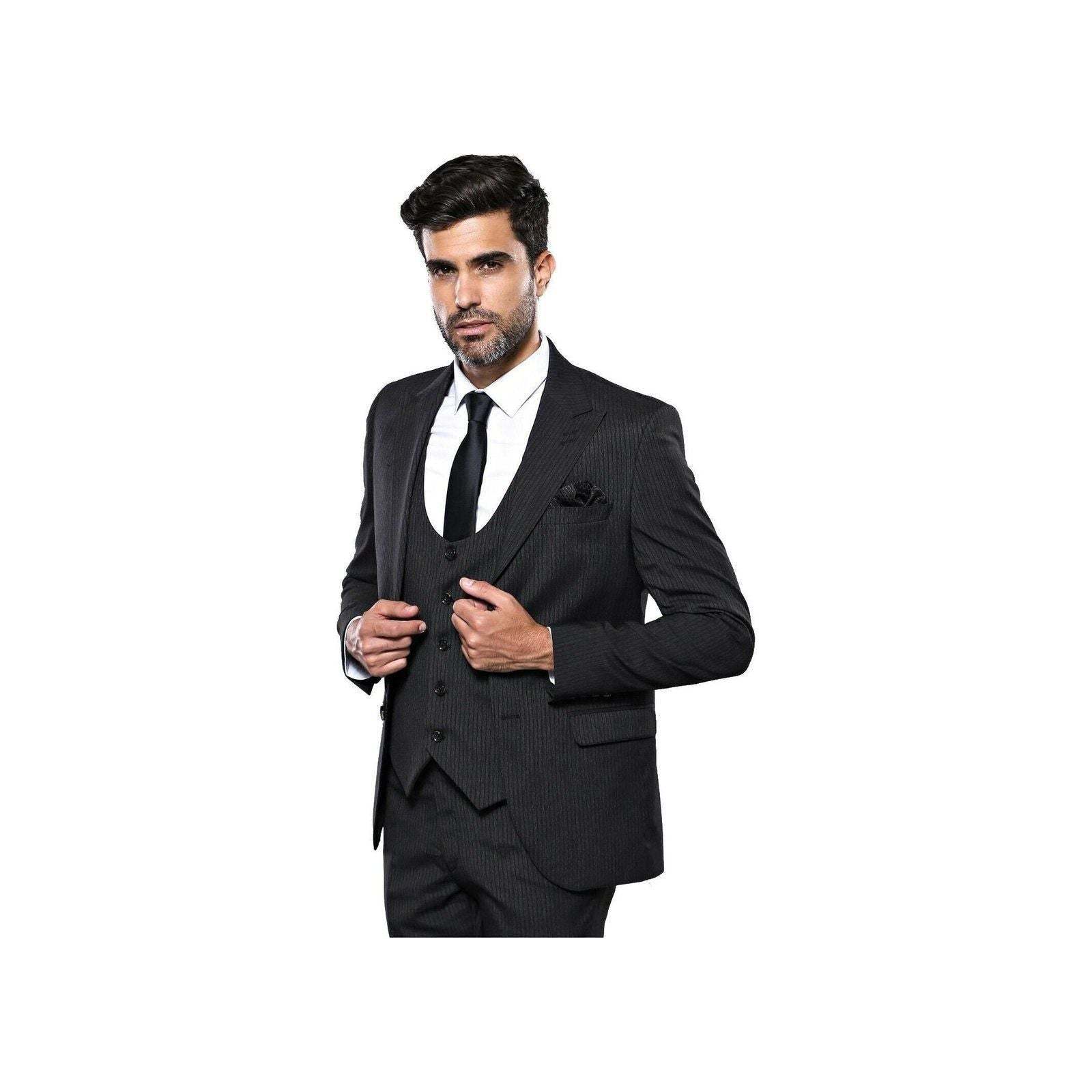 Men 3pc European Vested Suit WESSI J.VALINTIN Extra Slim Fit JV27 Black Stripe