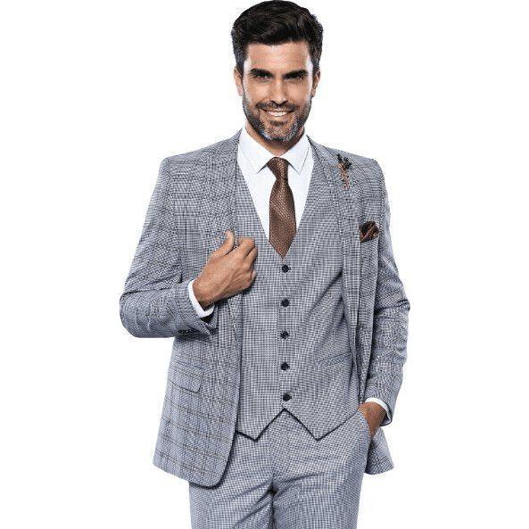 Men 3pc Vest Suit WESSI by J.VALINTIN Extra Slim Fit JV42 Blue Plaid TURKEY USA