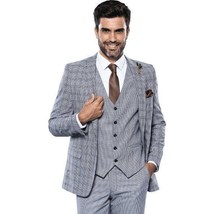 • Men 3pc Vest Suit WESSI by J.VALINTIN Extra Slim Fit JV42 Blue Plaid TURKEY USA image 1