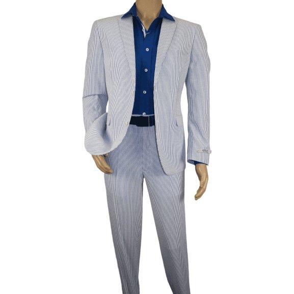 Men ADOLFO Seersucker Suit Stripe Casual Dressy Summer Suit 2 Button C622 Blue