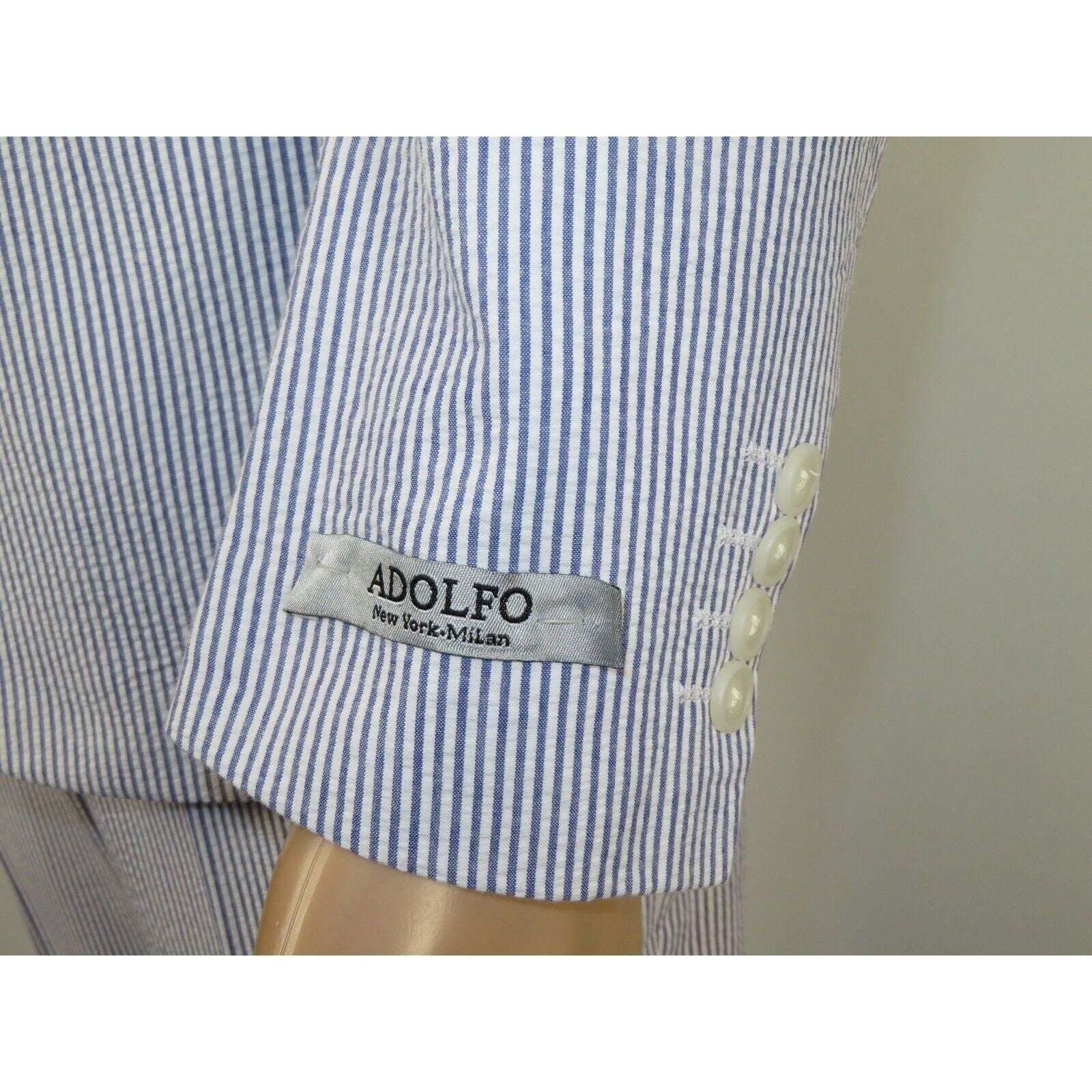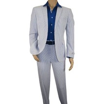 • Men ADOLFO Seersucker Suit Stripe Casual Dressy Summer Suit 2 Button C622 Blue image 1
