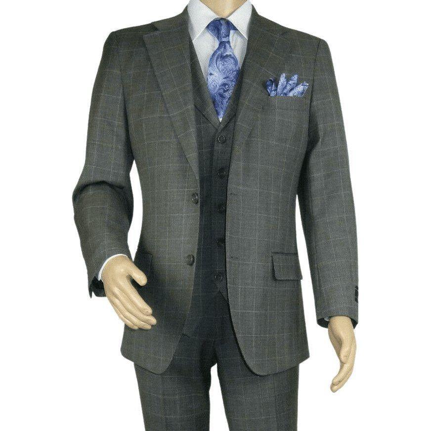 Men Apollo King 3pc Classic Suit A303 Gray white window pane 100% Wool