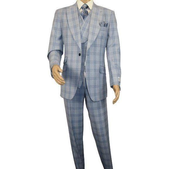 Men Apollo King 3pc Suit Window Pane Plaid 100% Soft Wool Super 150 #985-12 Blue