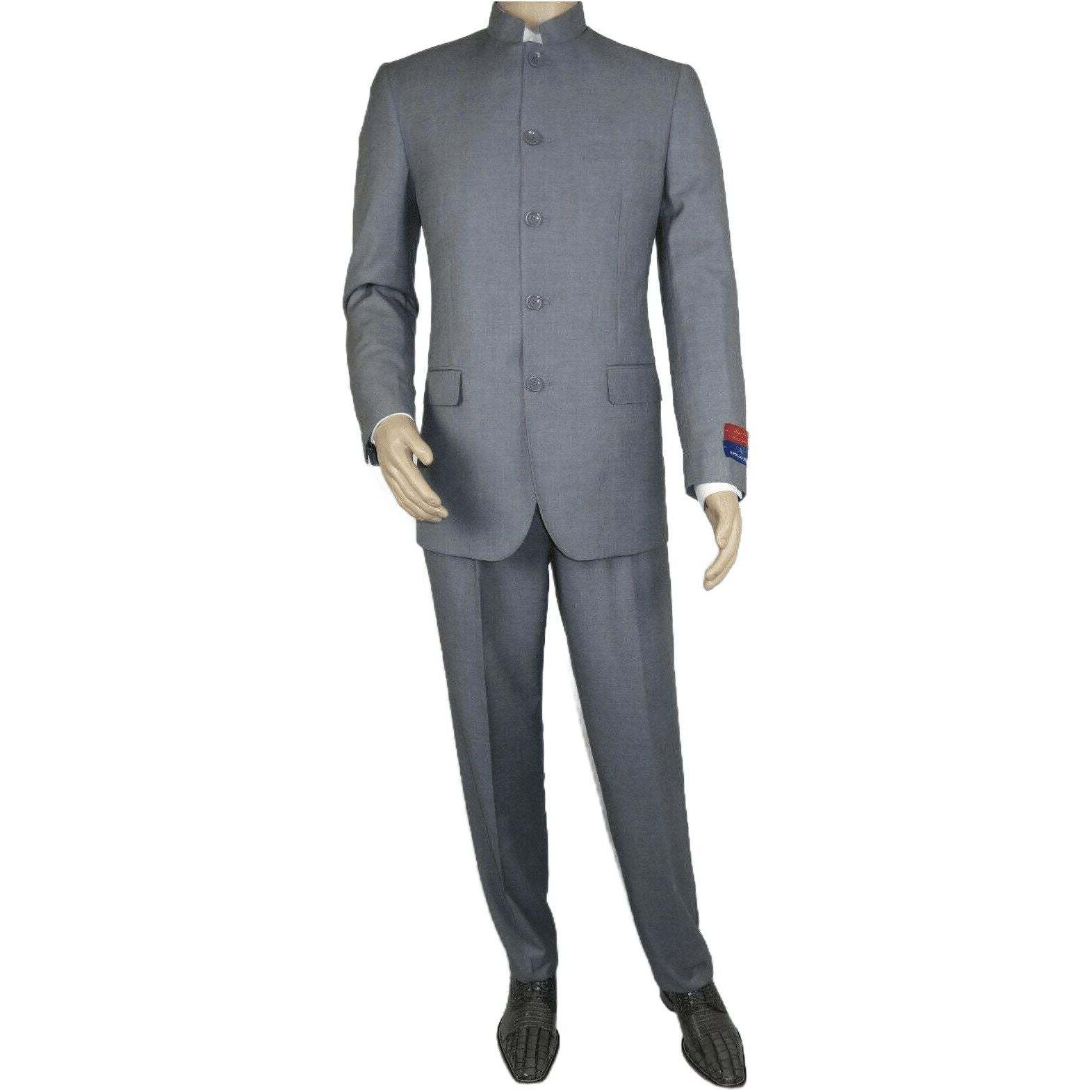 Men apollo king banded collarless suit mandarin 5 button wide leg m5 3 gray new 232041