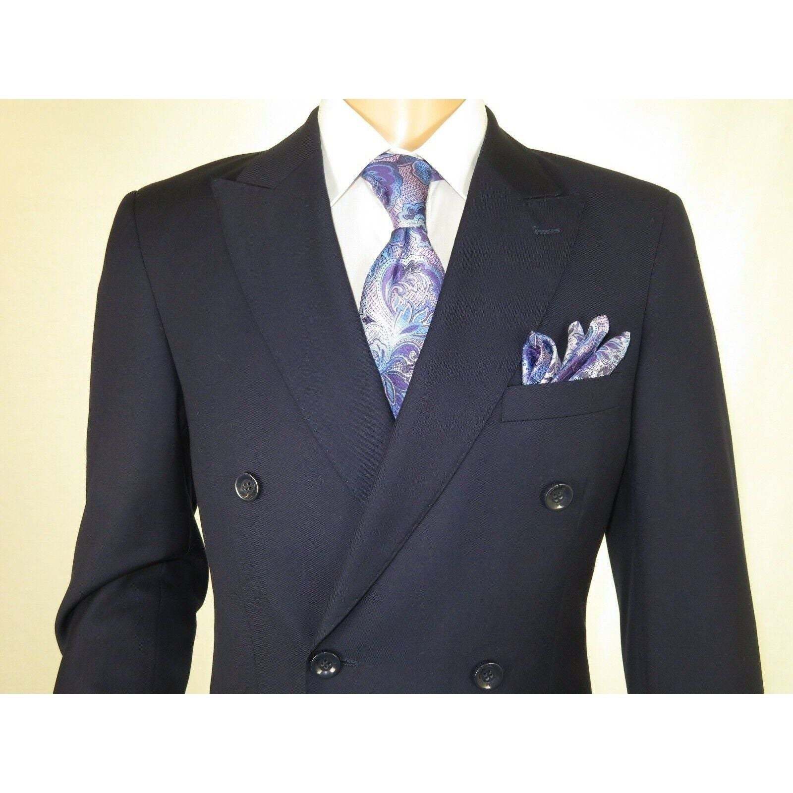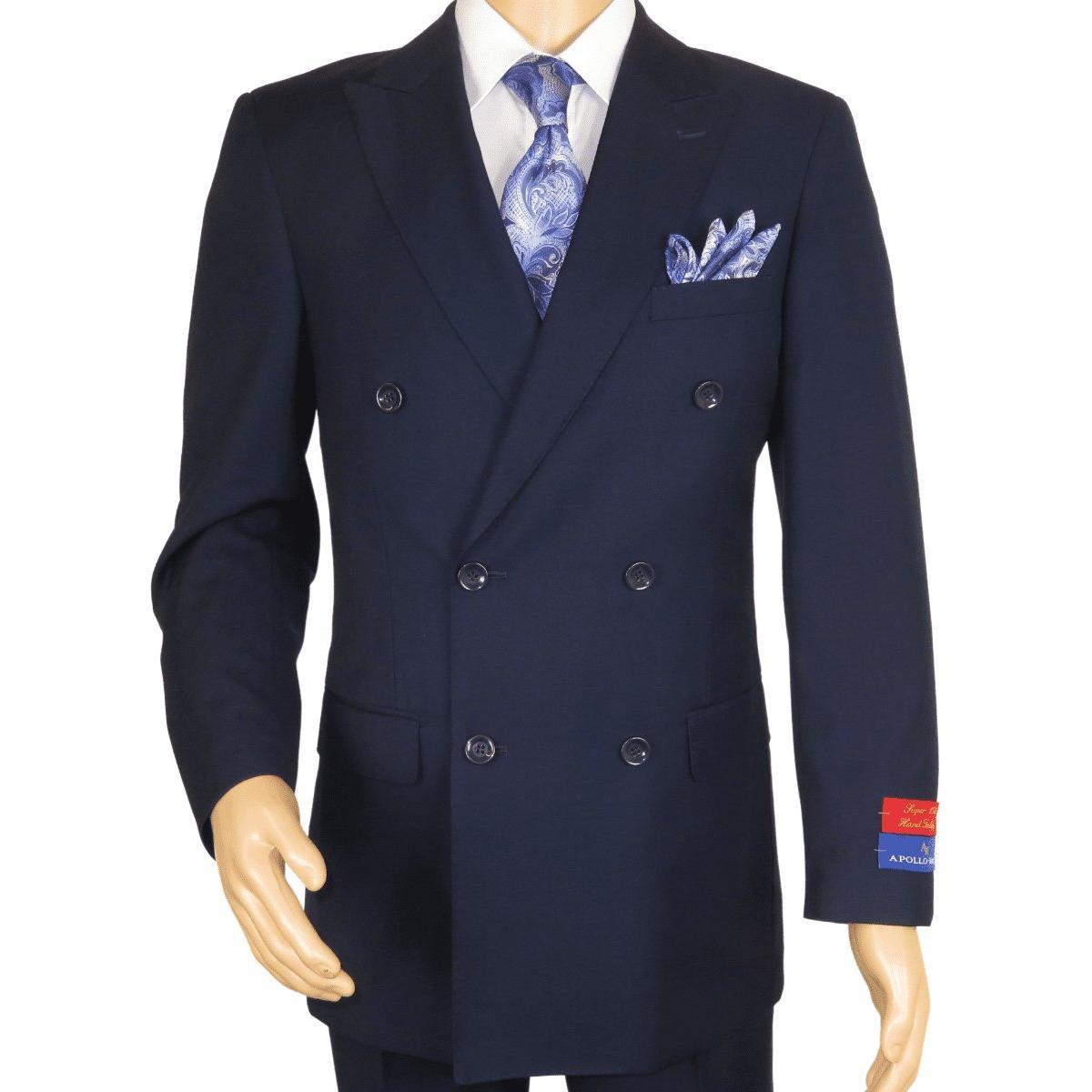 • Men Apollo King Double Breasted Suit Classic Peak Lapel Pleated DM22 Navy Blue image 1