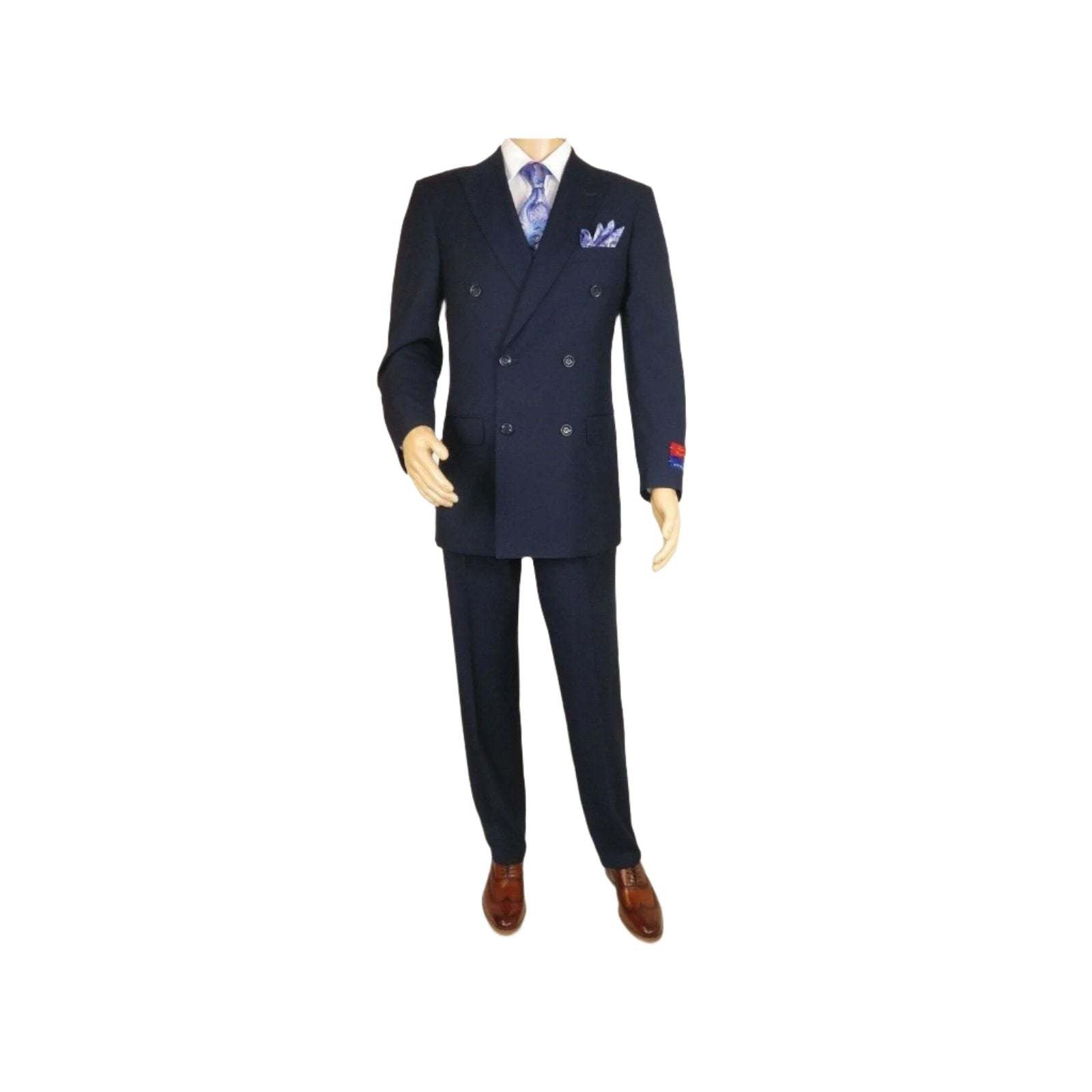 Men Apollo King Double Breasted Suit Classic Peak Lapel Pleated DM22 Navy Blue