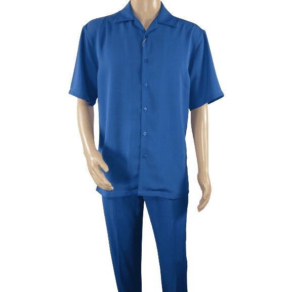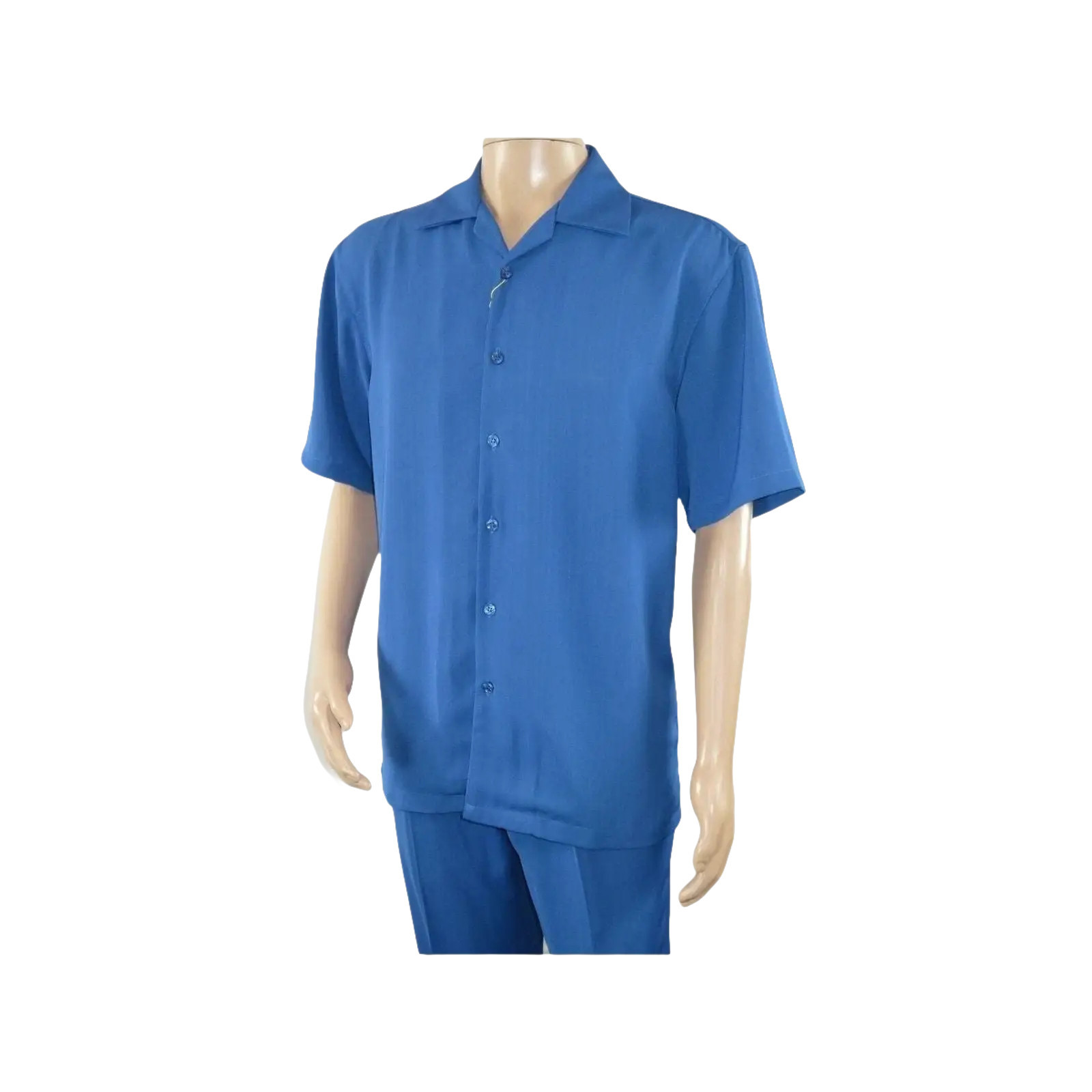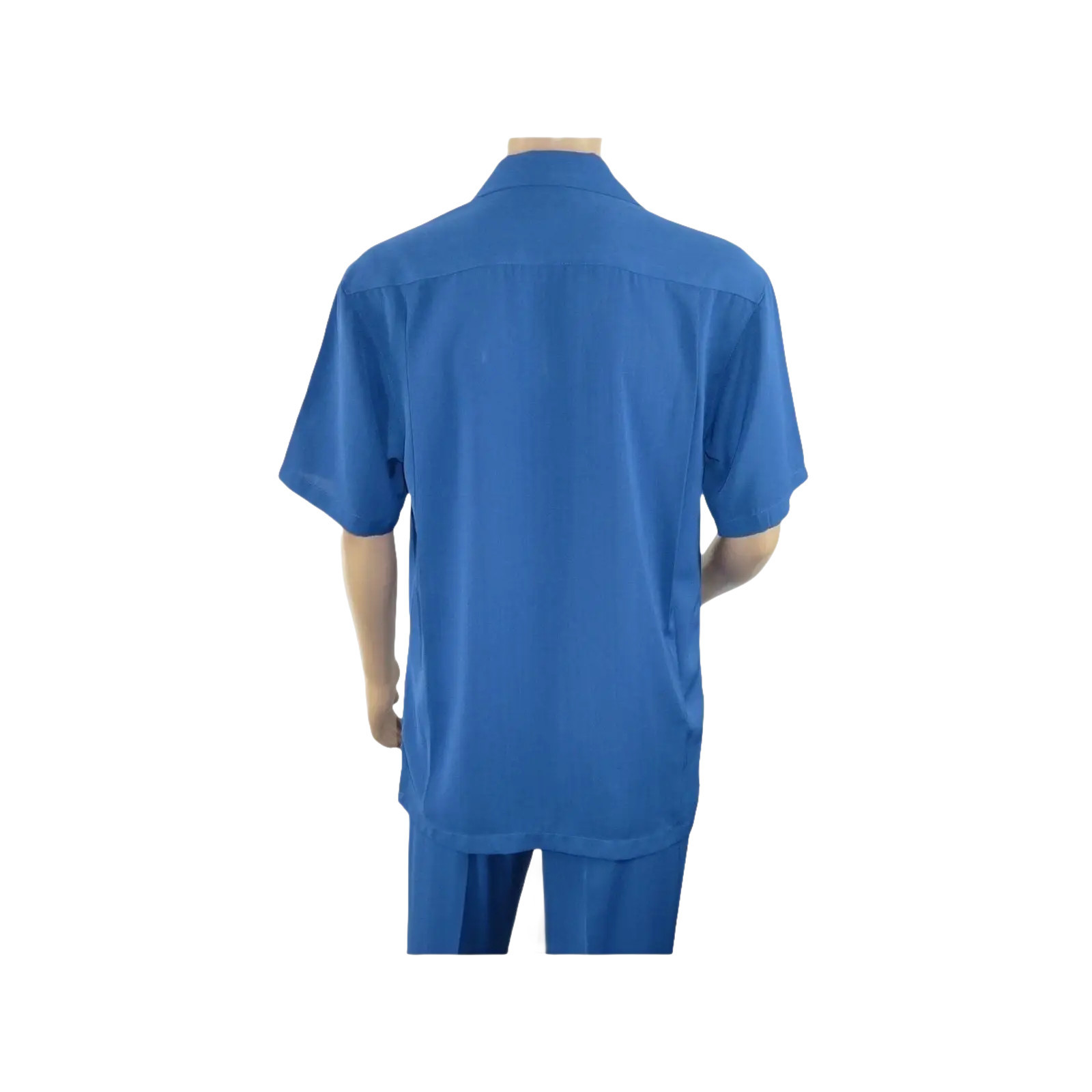 Men INSERCH 2pc Walking Leisure Suit Shirt Pants Set Short Sleeves 9356 Blue
