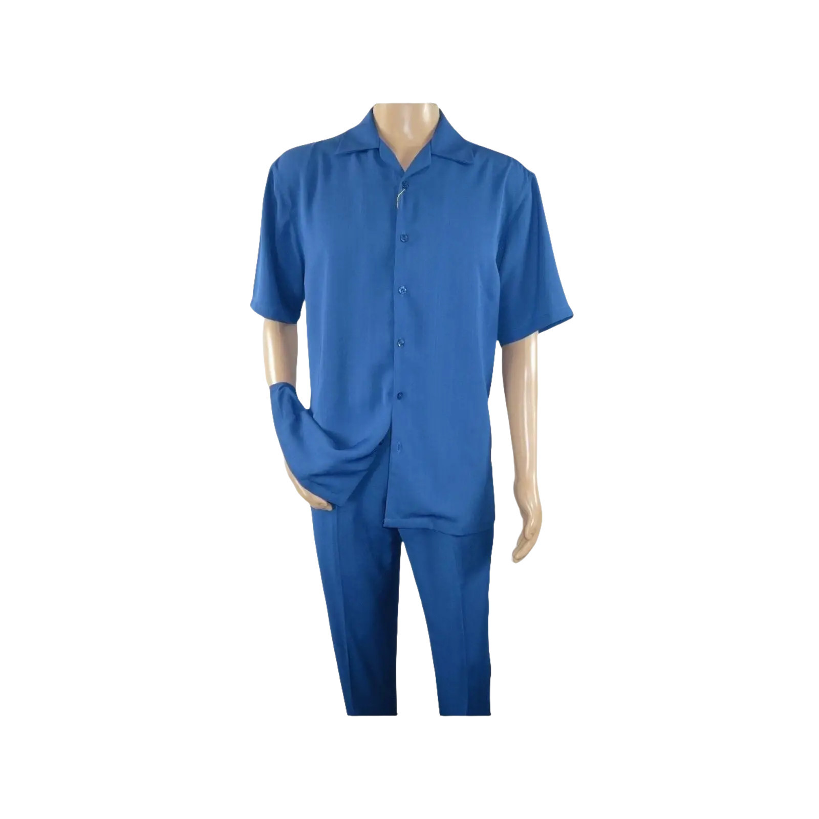 Men inserch 2pc walking leisure suit shirt pants set short sleeves 9356 blue 191090