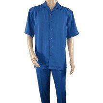 • Men INSERCH 2pc Walking Leisure Suit Shirt Pants Set Short Sleeves 9356 Blue image 1