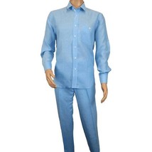 Men inserch premium soft linen breathable 2pc walking leisure suit ls29116 blue 629818