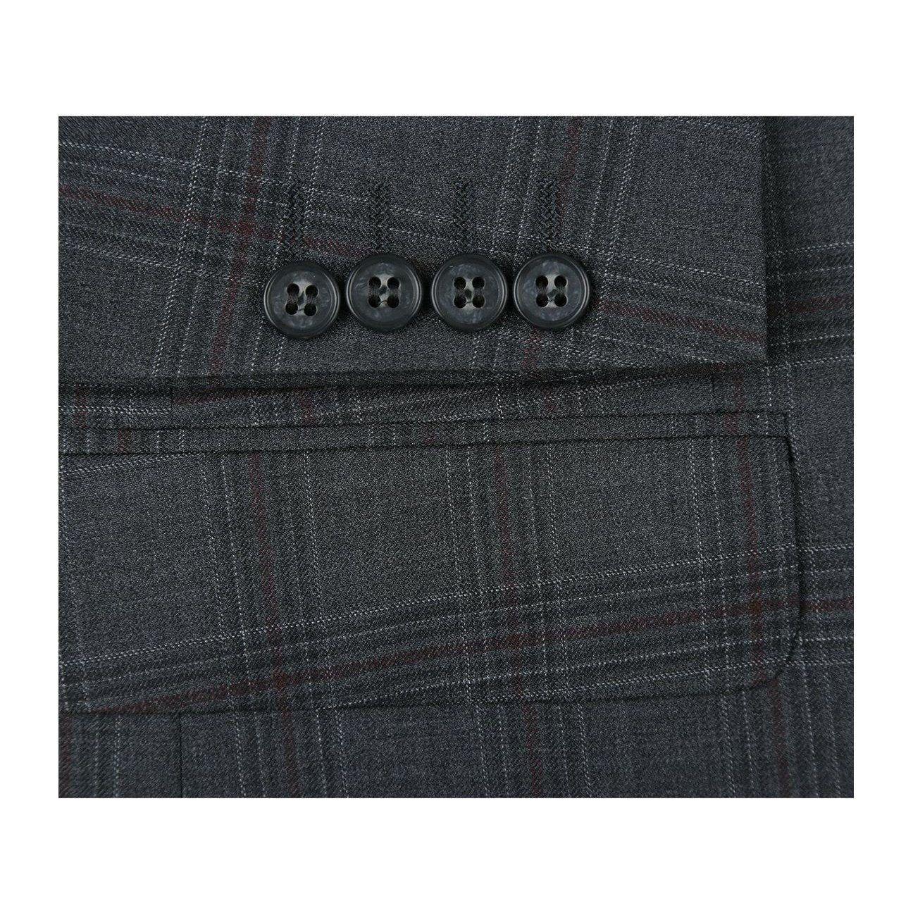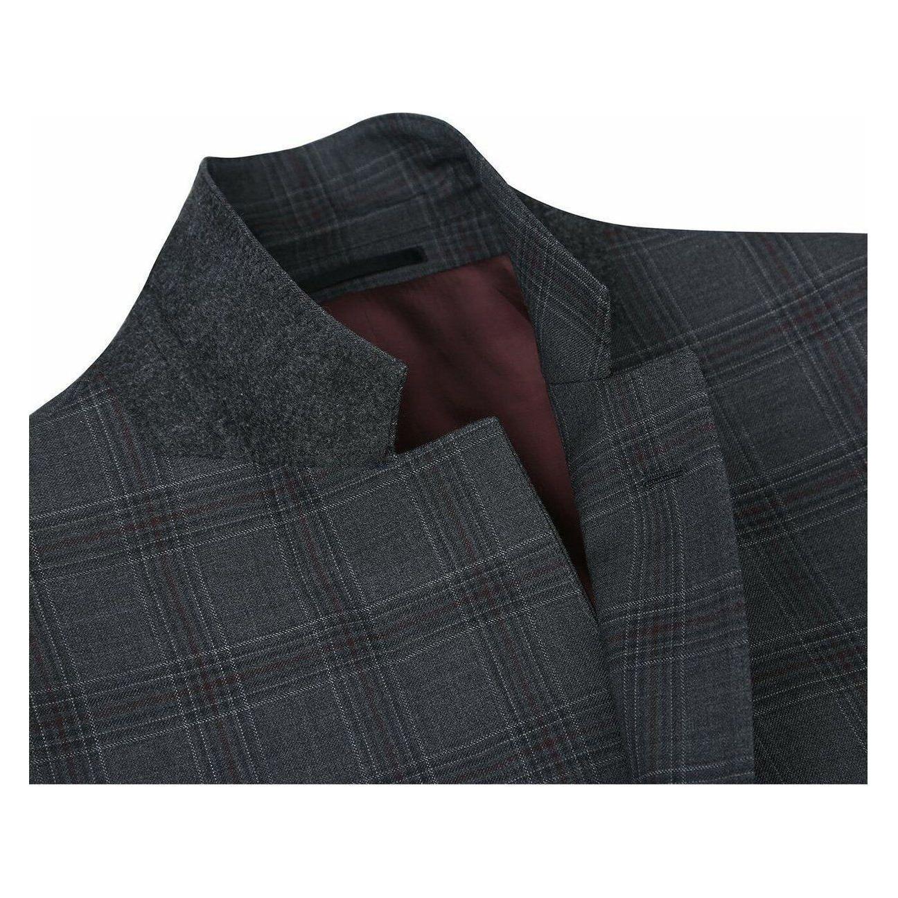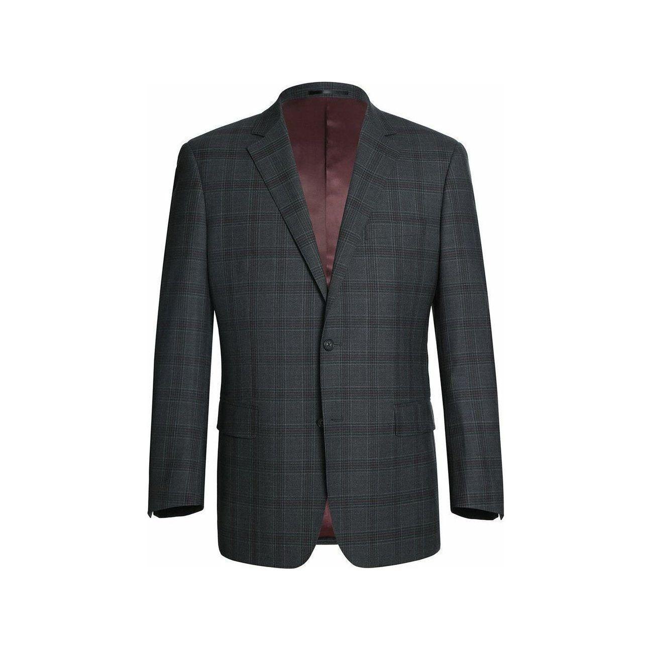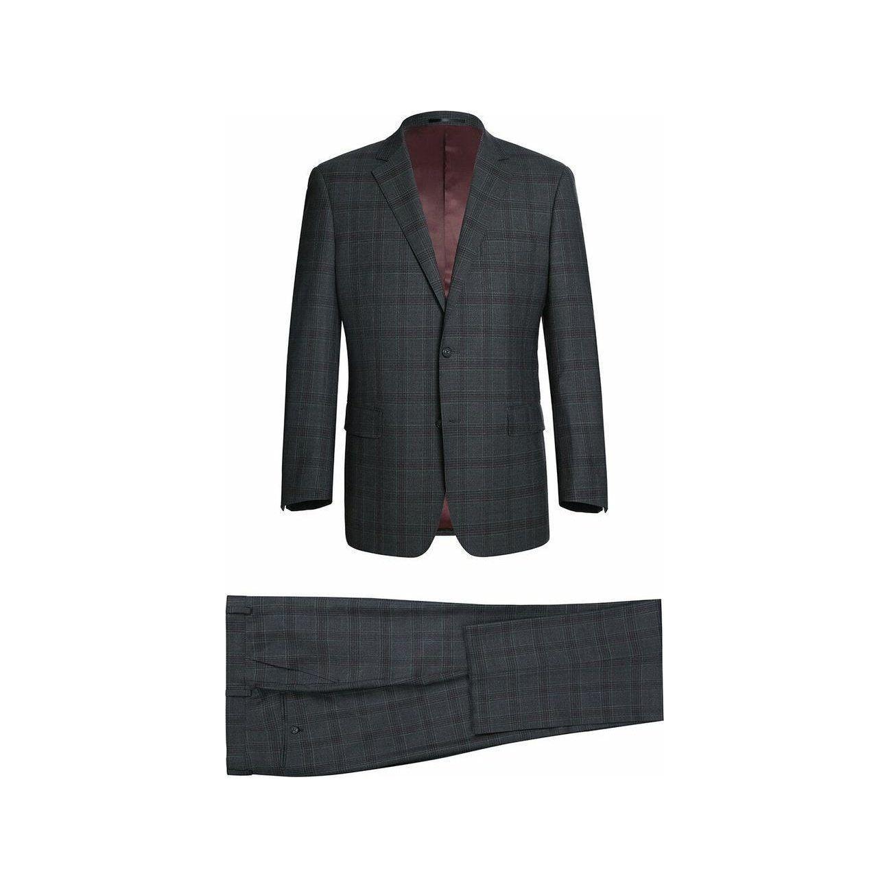 Men Renoir Suit Super 140 Wool Side Vent Classic Fit English Plaid 559-2 Gray