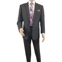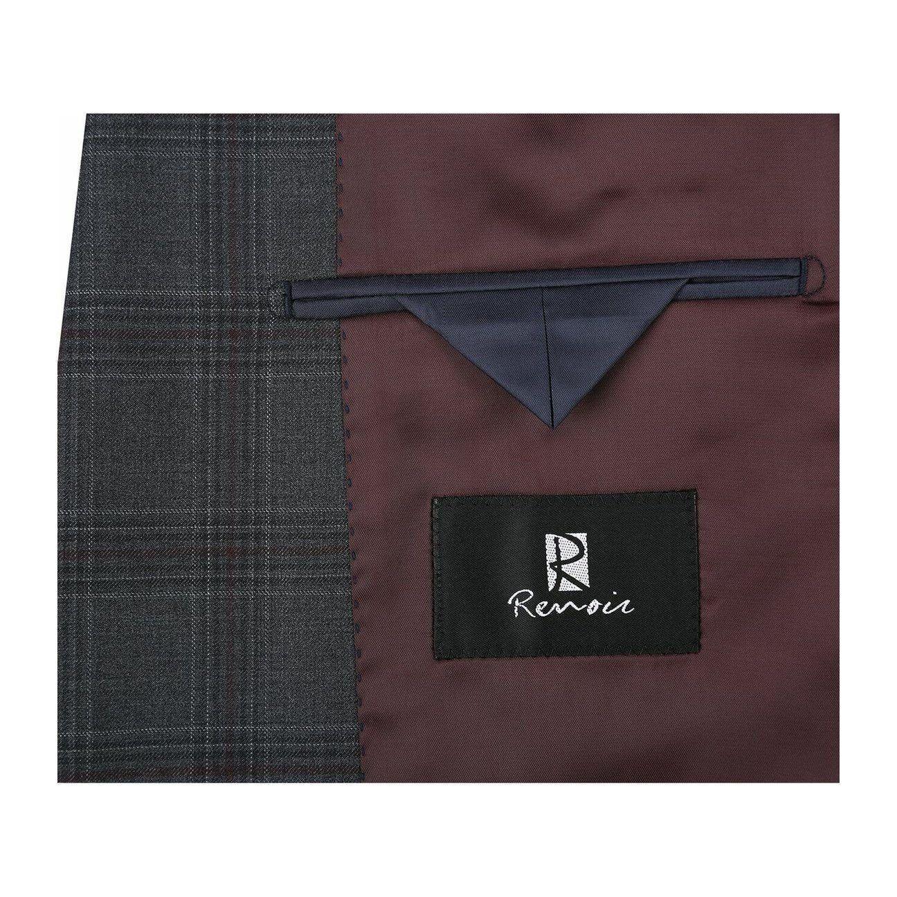 • Men Renoir Suit Super 140 Wool Side Vent Classic Fit English Plaid 559-2 Gray image 1