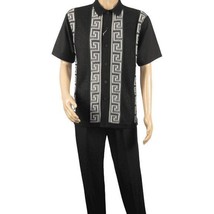 Men Silversilk 2pc walking leisure Matching Suit Italian woven knits 51011 Black