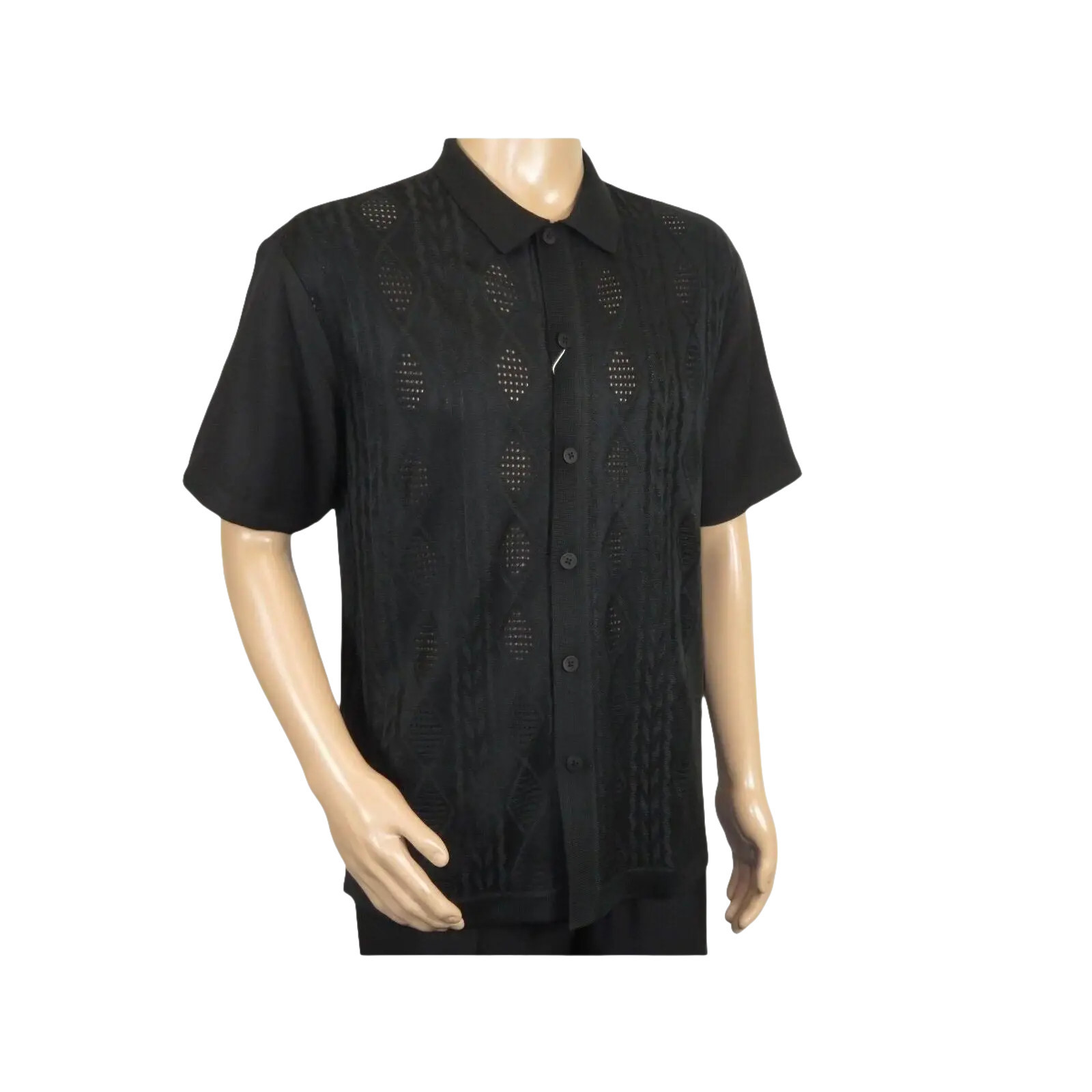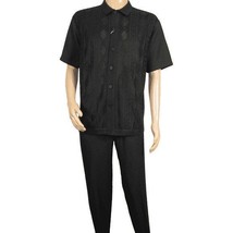 Men Silversilk 2pc walking leisure Matching Suit Italian woven knits 51016 Black