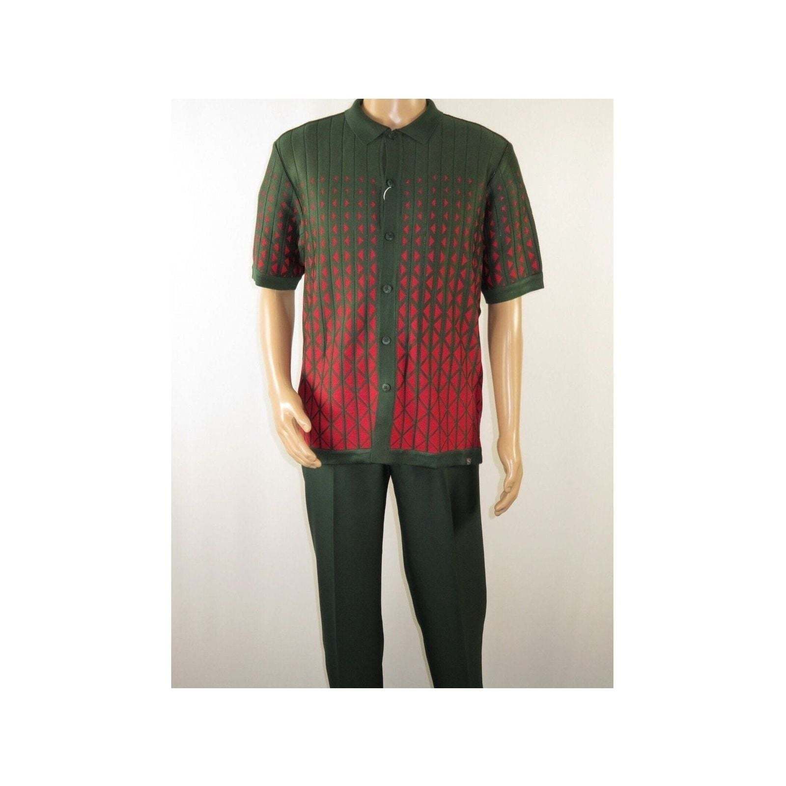 Men Silversilk 2pc walking leisure suit Italian woven knits 3115 Green Red