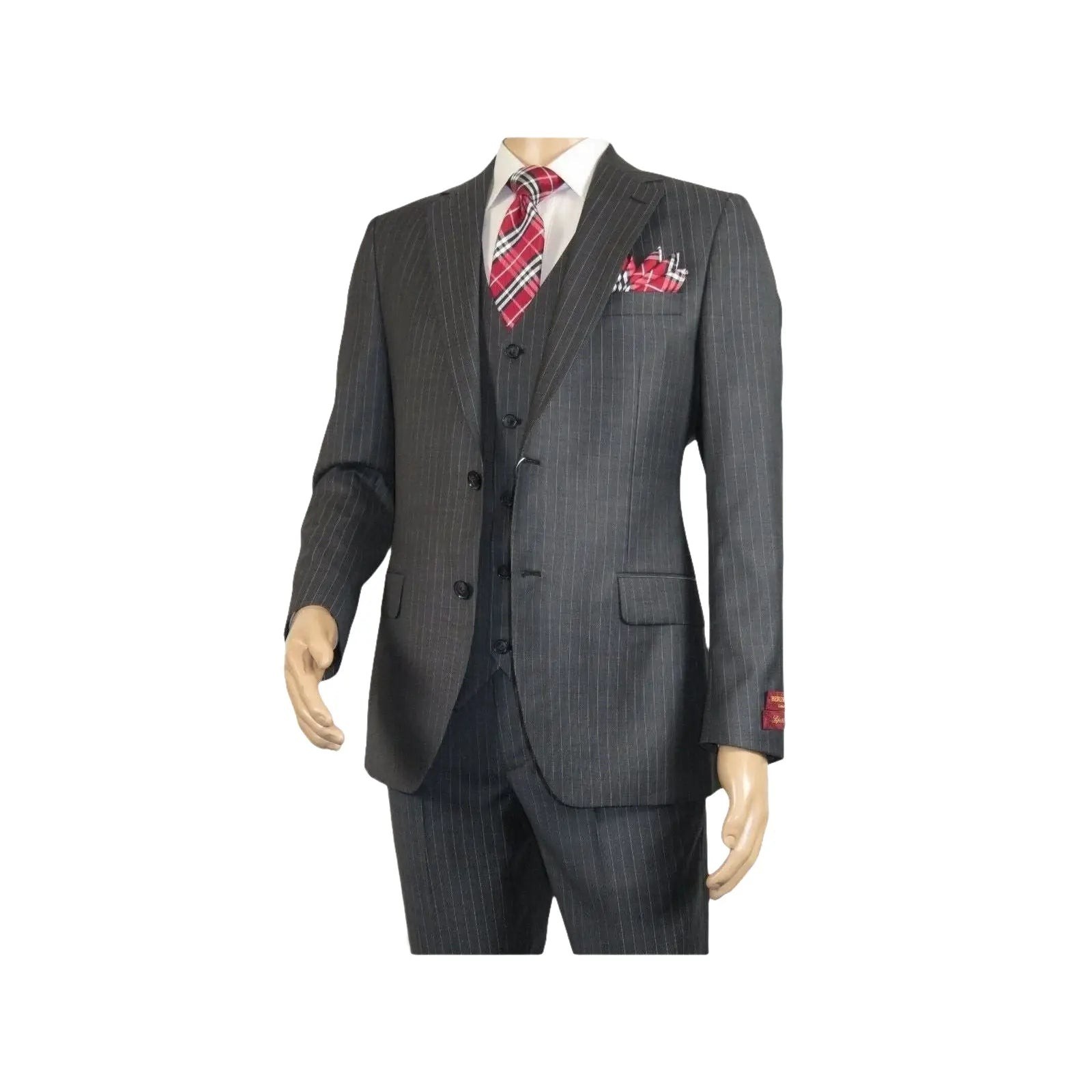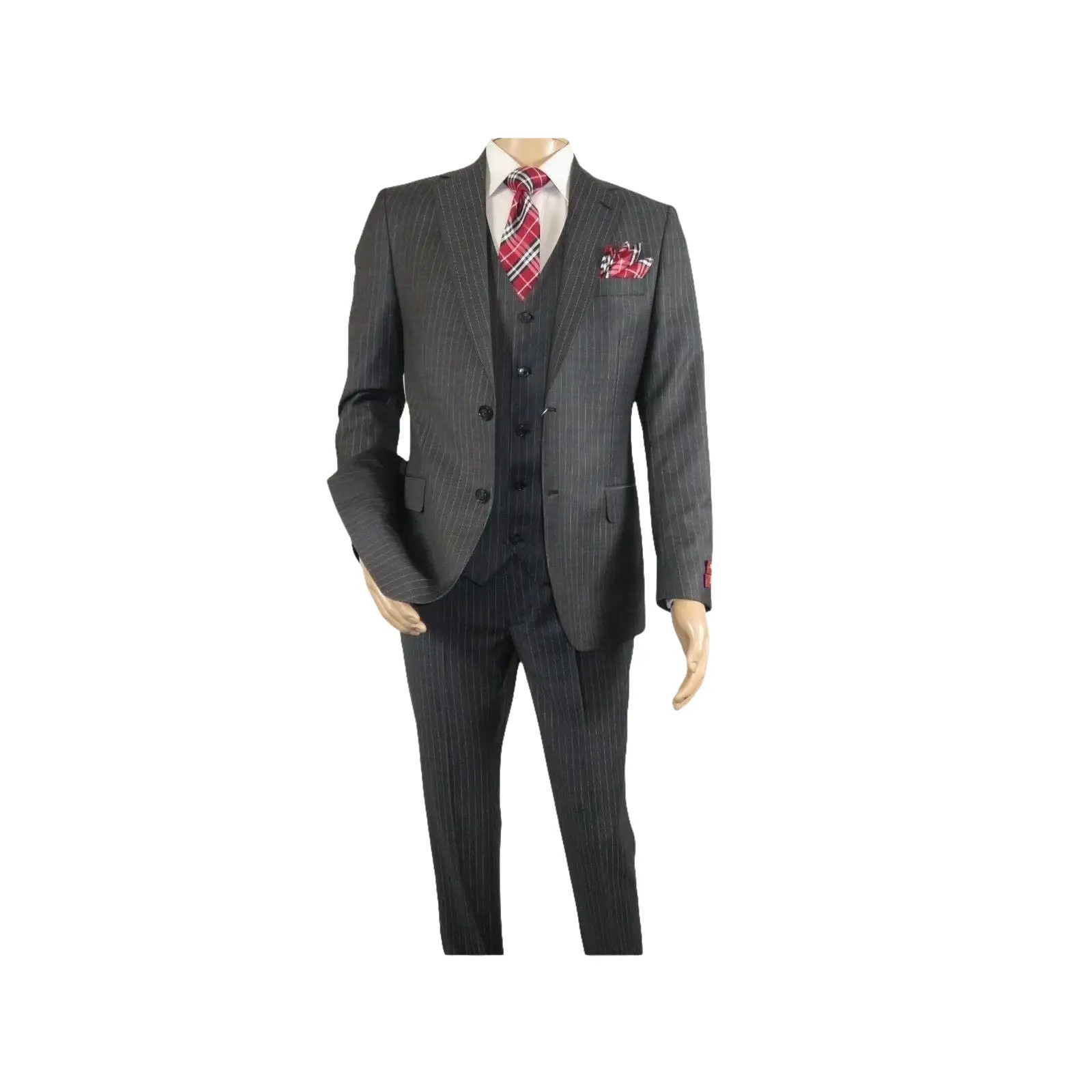 Men Suit BERLUSCONI Turkey 100% Italian Wool Super 180's Vested #Ber2 Charcoal