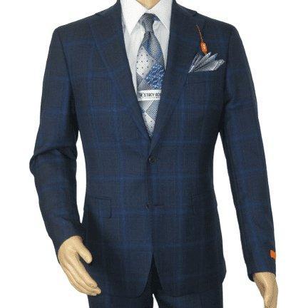 Men TALLIA Suit Wool Blend English Glen Plaid Classic 2Button VDVA2SVX0026 Blue