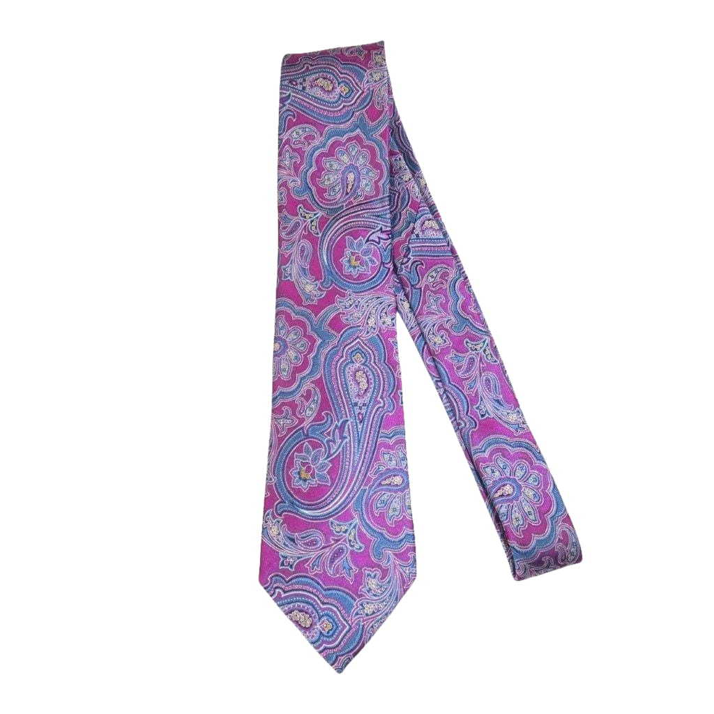 • Men's 100% Silk Necktie By Bruno Piattelli Paisley Floral Fancy BP18 Pink Blue image 1