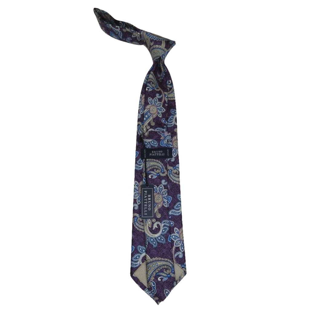 Men's 100% Silk Necktie By Bruno Piattelli Paisley Floral Fancy BP3 Plum Blue