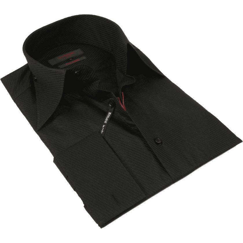 Men's Axxess Turkey Shirt 100% Cotton Long Collar 224-06 French Cuffs Black