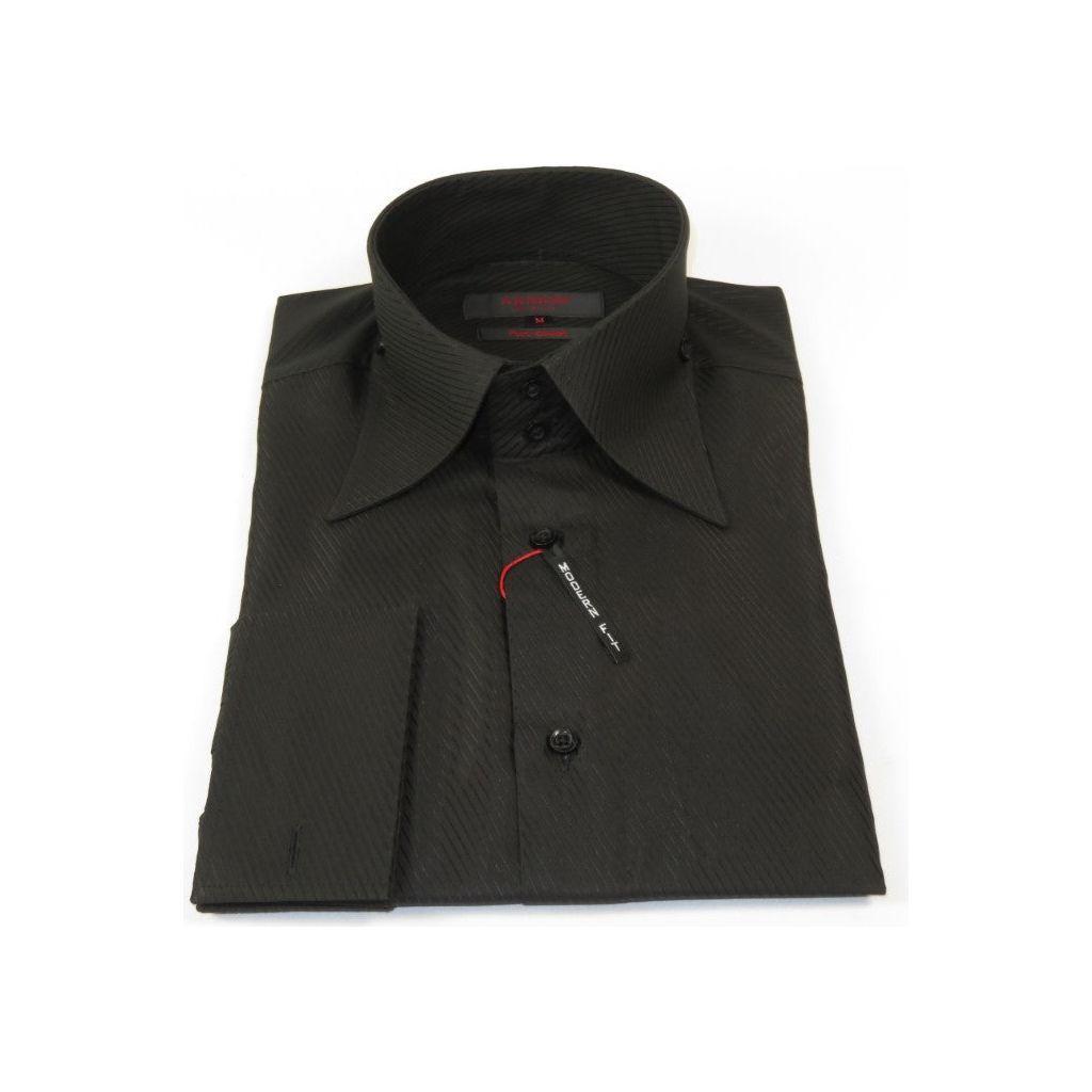 Mens axxess turkey shirt 100 cotton long collar 224 06 french cuffs black 570341