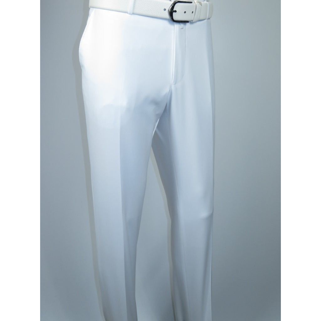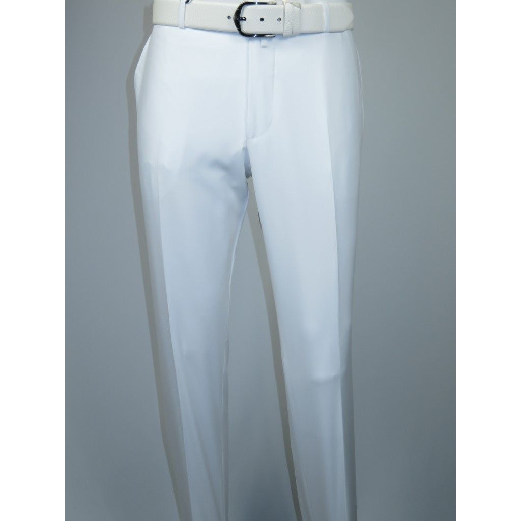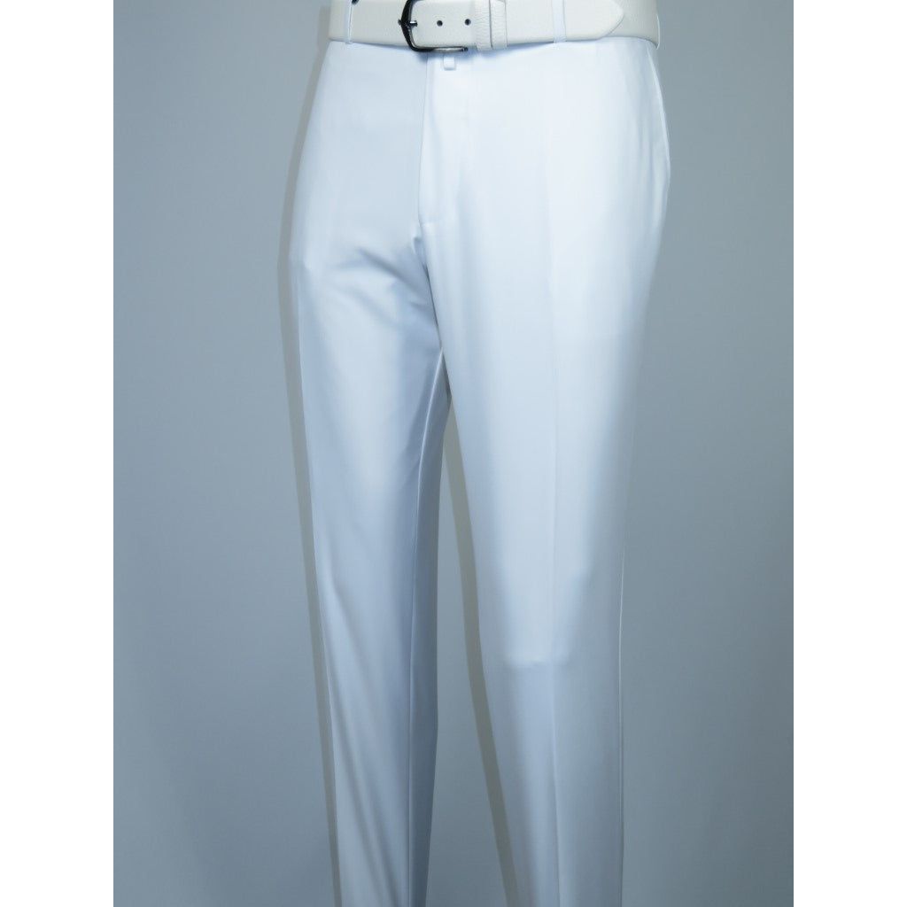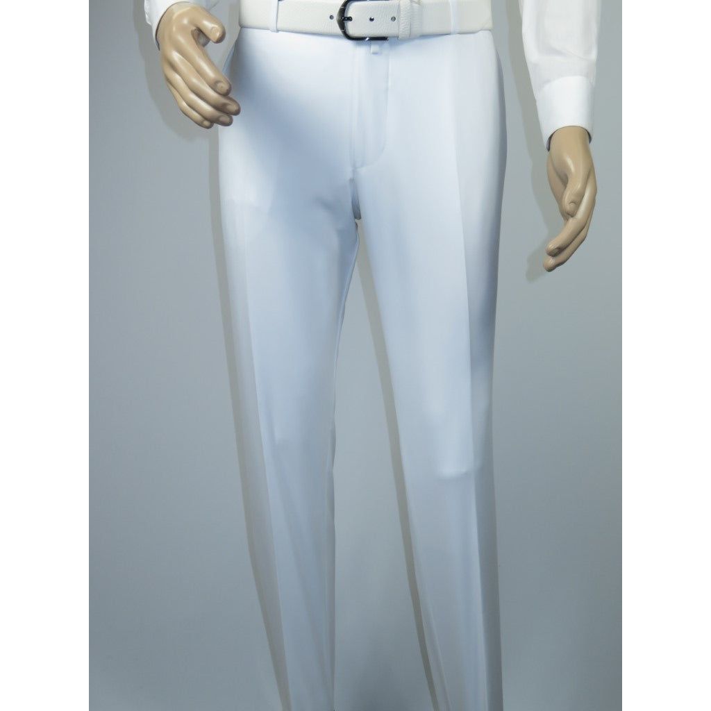 Men's MONO Turkey Slacks Wool Blend Plain Front Slim Fit 2534-10 White