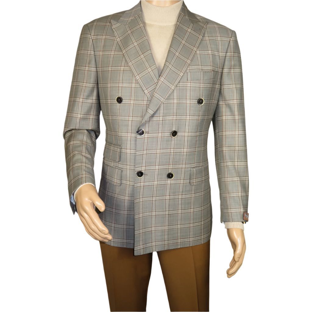 Men's Mono Double Breasted Blazer Super 180s Wool 1523-04 Gray Brown Plaid