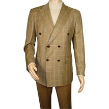 Men's Mono Double Breasted Blazer Super 180s Wool 1523-05 Camel Brown Plaid