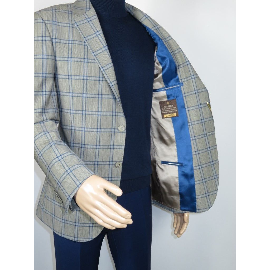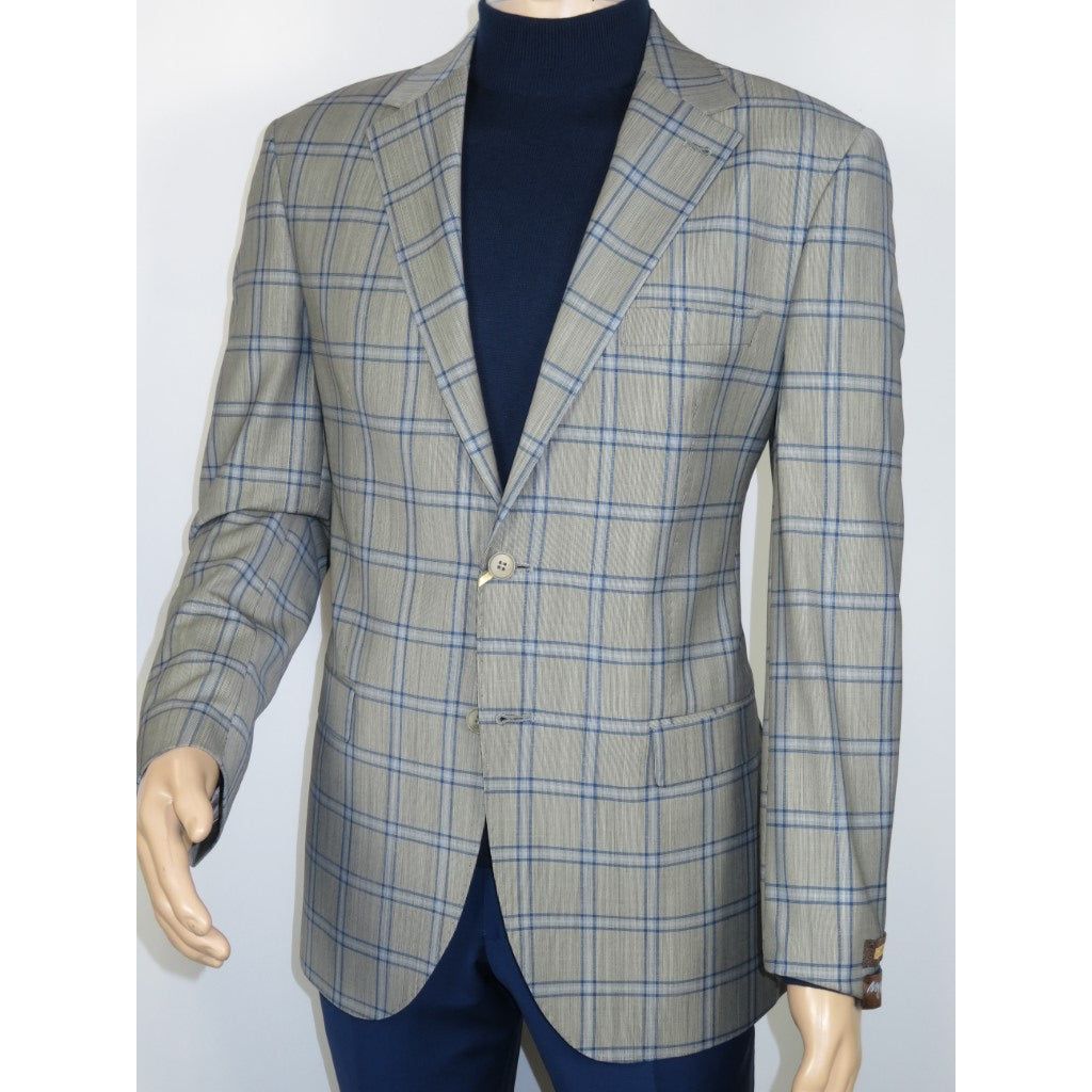 Men's Mono Turkey Sport Coat 100% Super 180s Wool 1480-03 Gray Blue Plaid