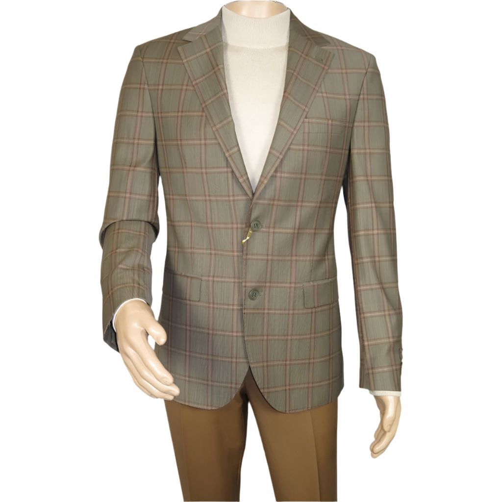 Men's Mono Turkey Sport Coat 100% Super 180s Wool 1480-04 Tan Brown Plaid