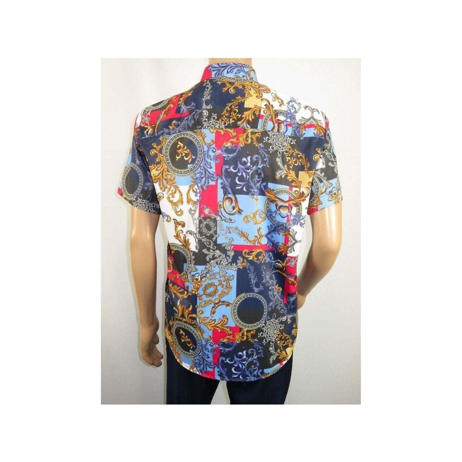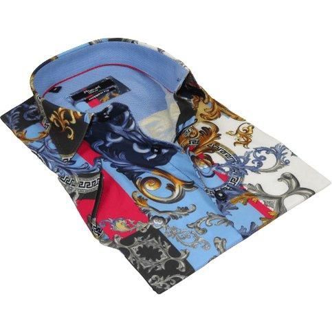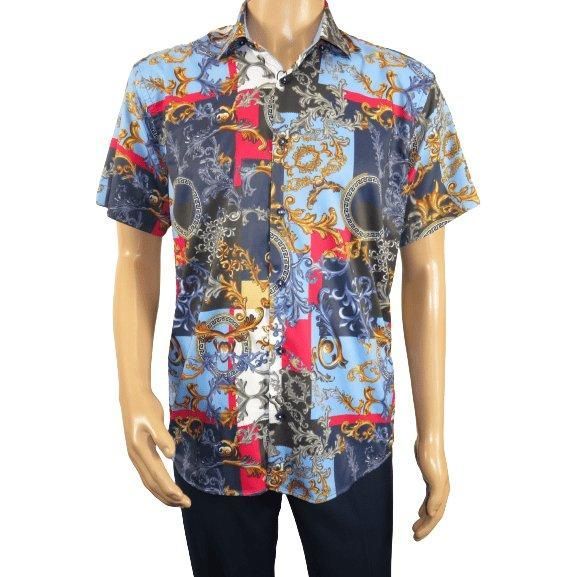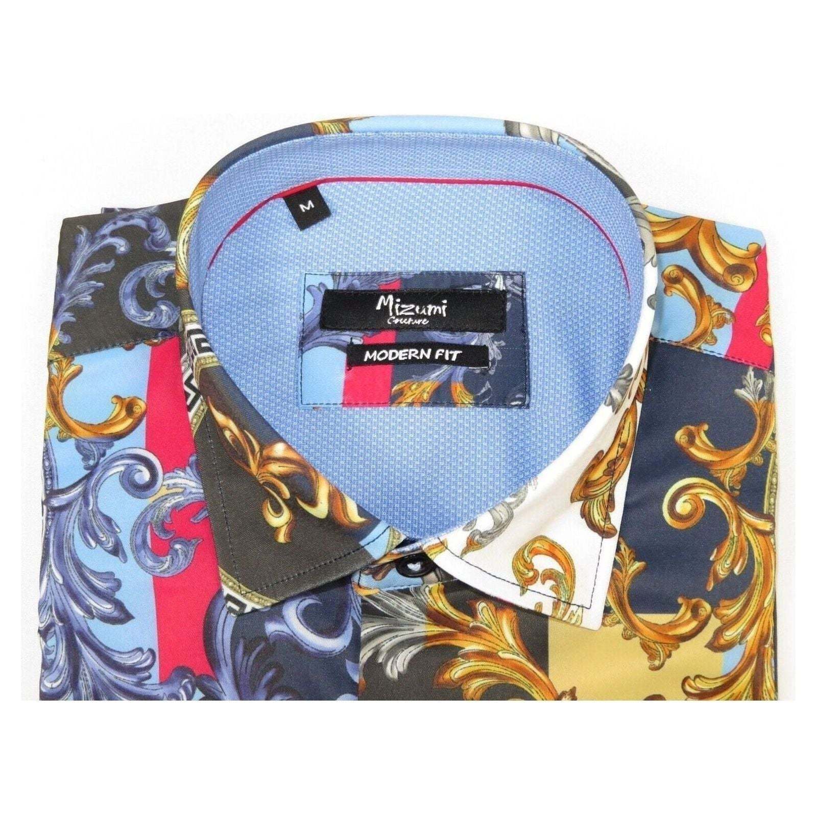 Men's Sports Shirt by MIZUMI Medallion Floral Printed Short Sleeves M647 Blue