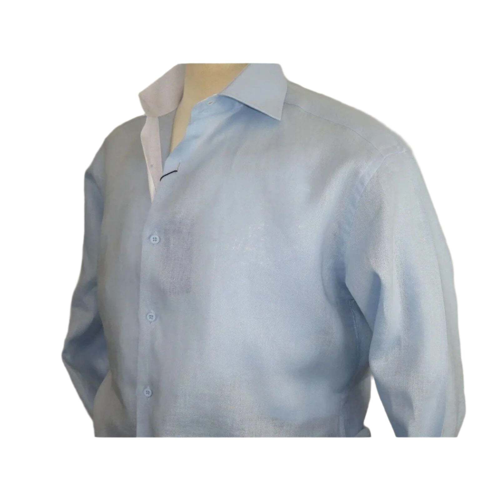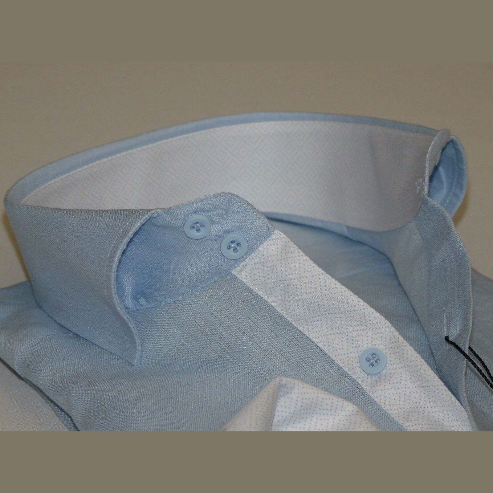• Mens 100% Linen Summer Shirt J.Valintin Turkey-Usa High Collar OBR78-09 Blue image 8