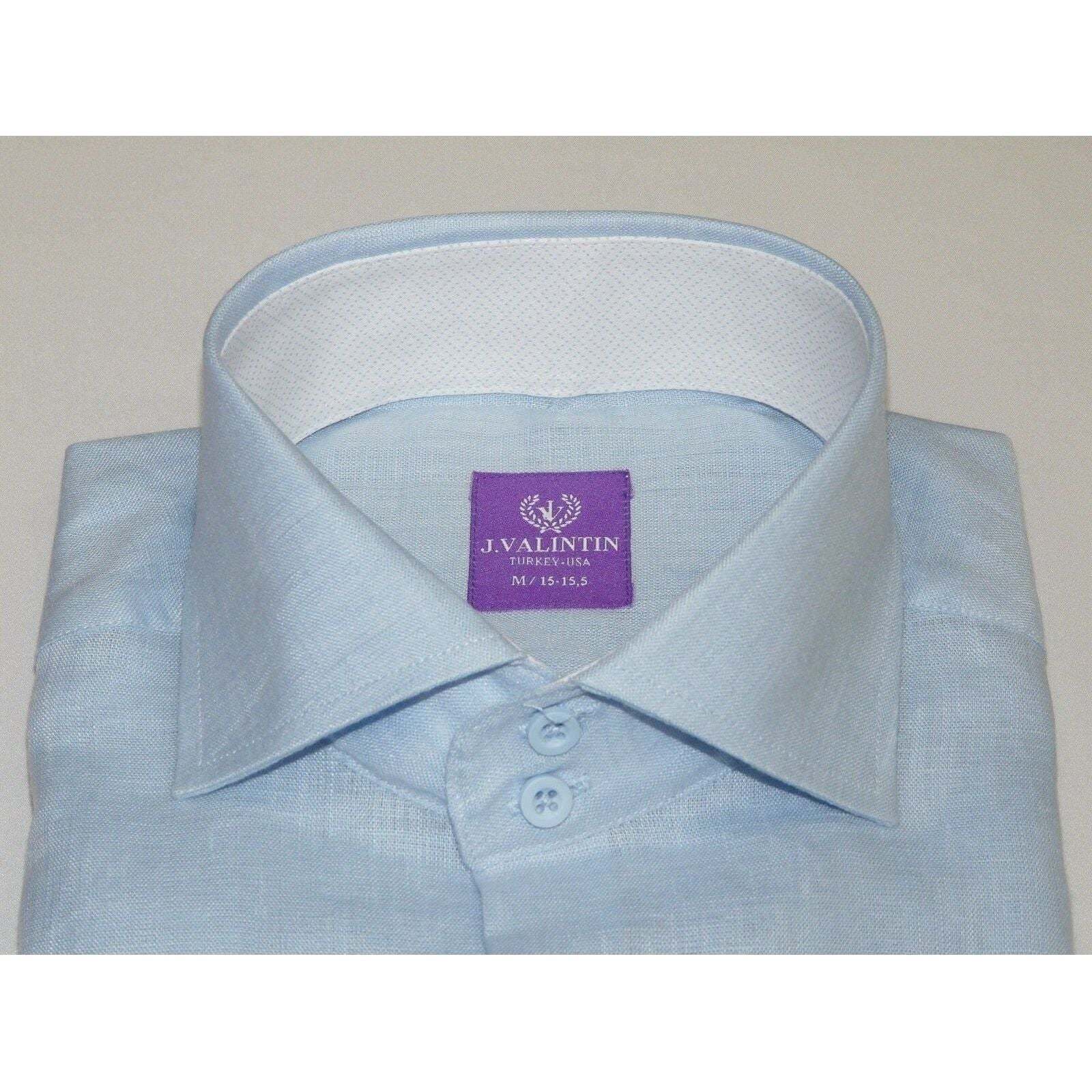 • Mens 100% Linen Summer Shirt J.Valintin Turkey-Usa High Collar OBR78-09 Blue image 10