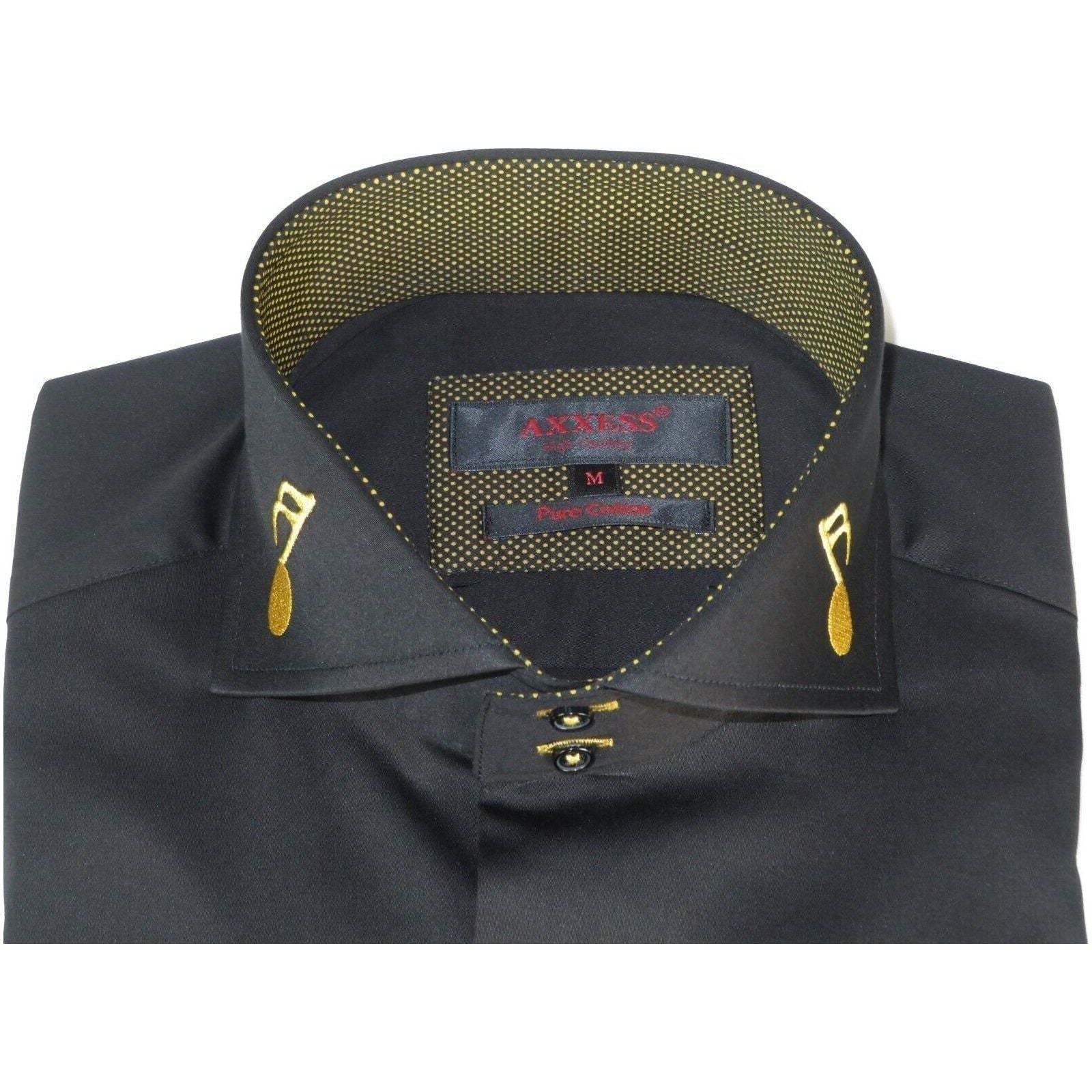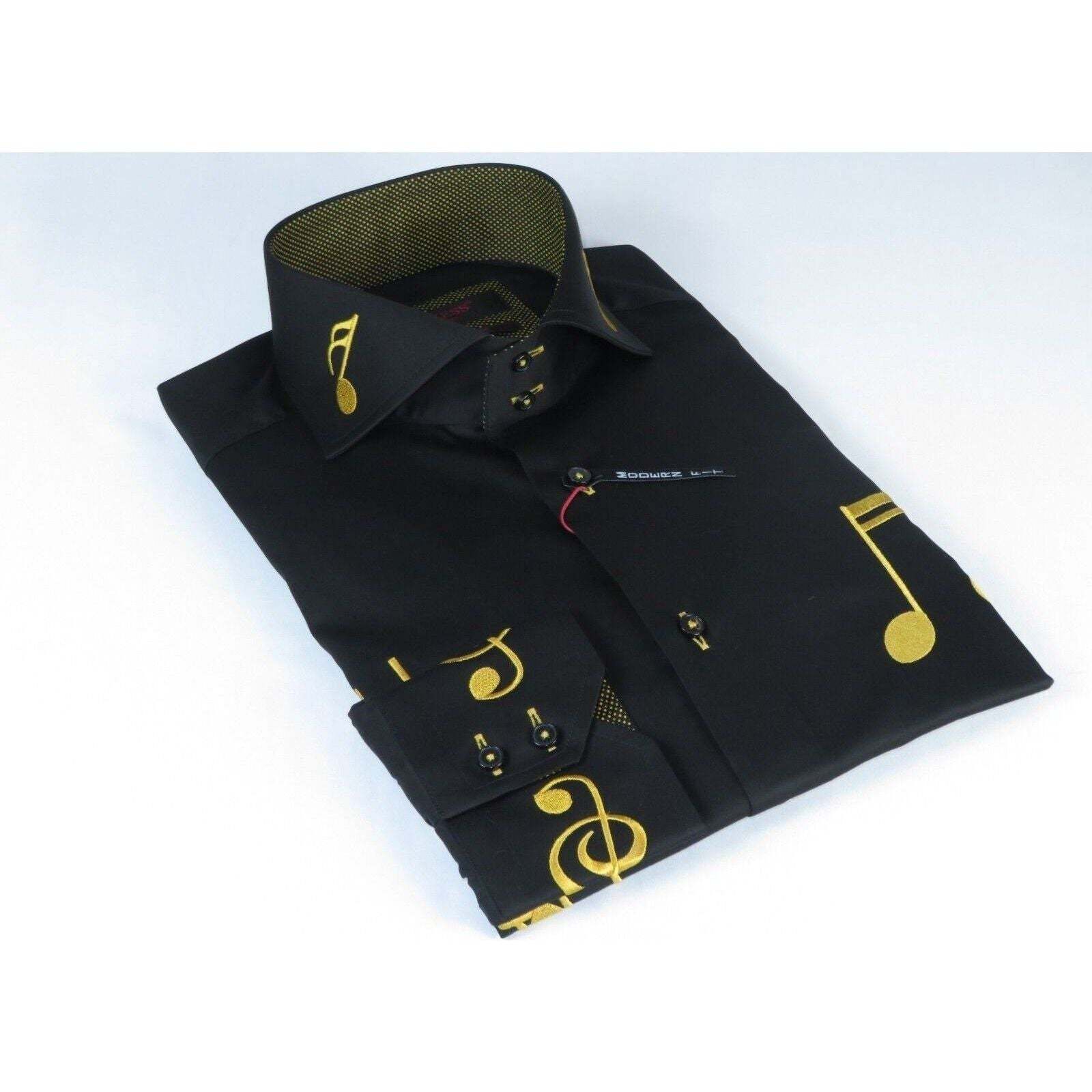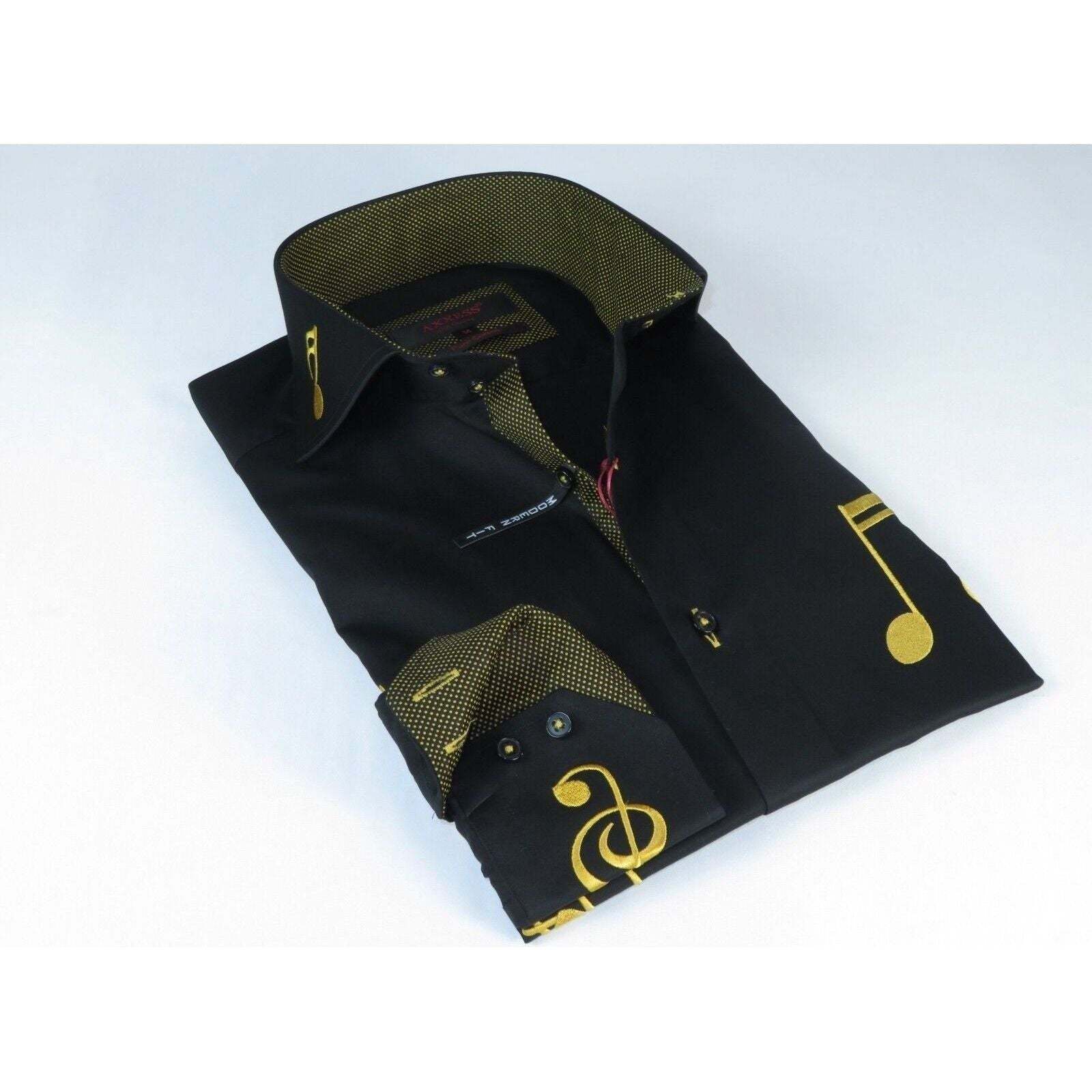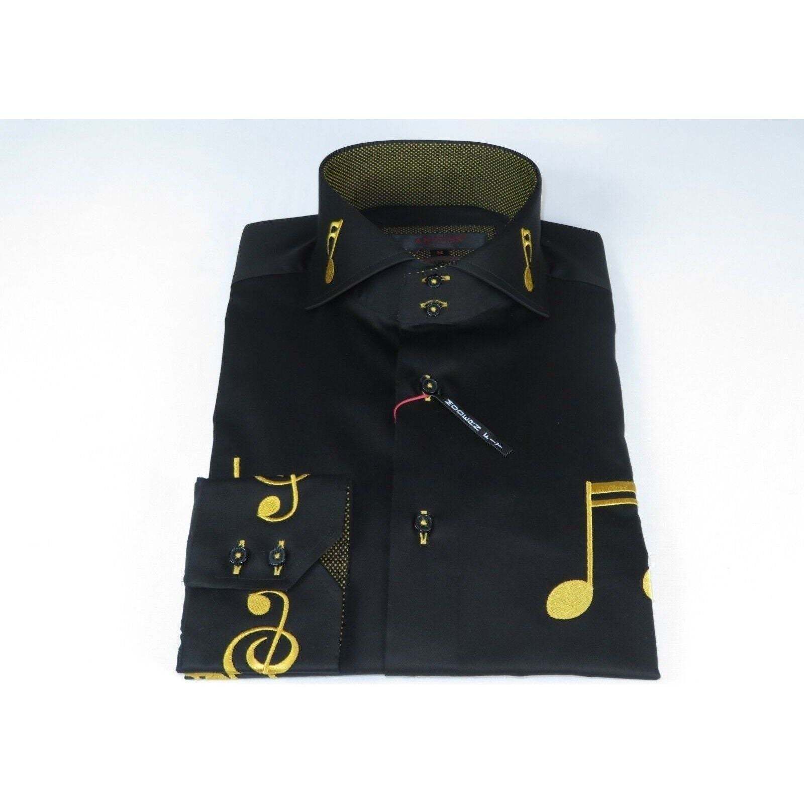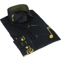 Mens AXXESS Musician Singer Dress Shirt Turkey Musical Notes 322-13 Black Gold