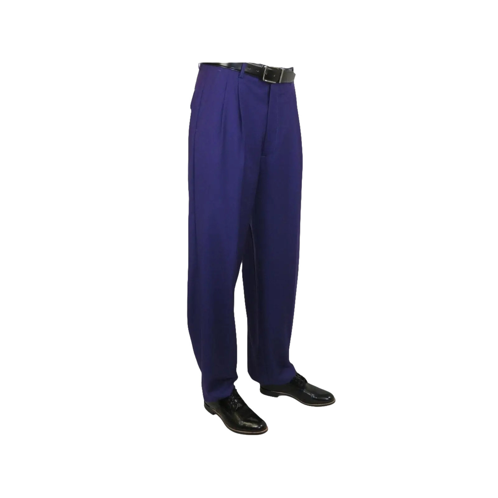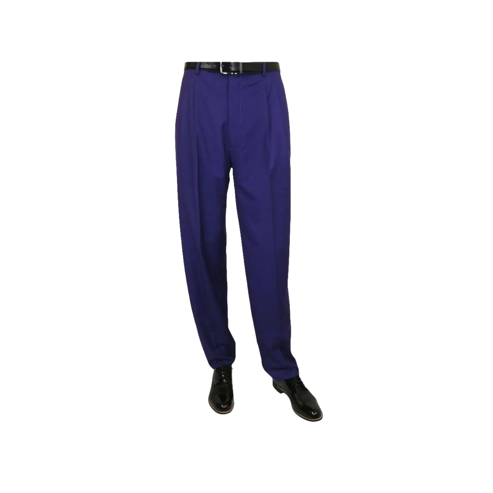 Mens Apollo King Banded Collarless suit Chinese Mandarin Wide leg AG95 Purple