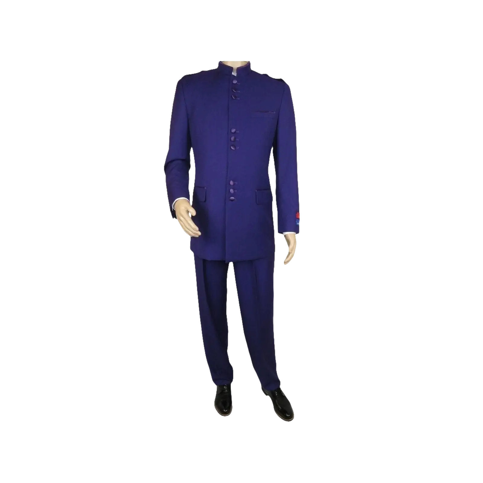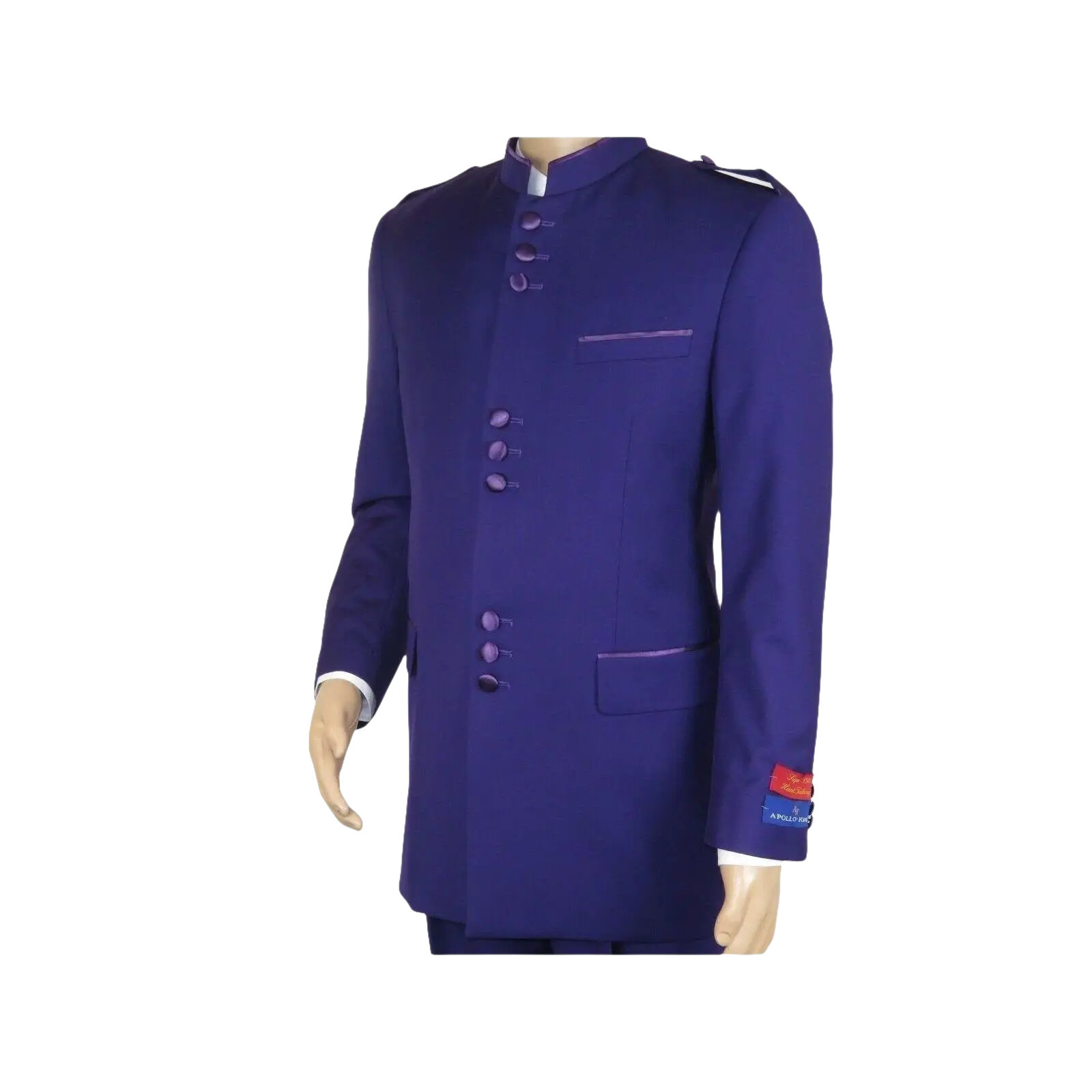Mens apollo king banded collarless suit chinese mandarin wide leg ag95 purple 953476
