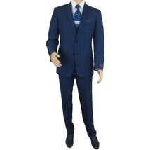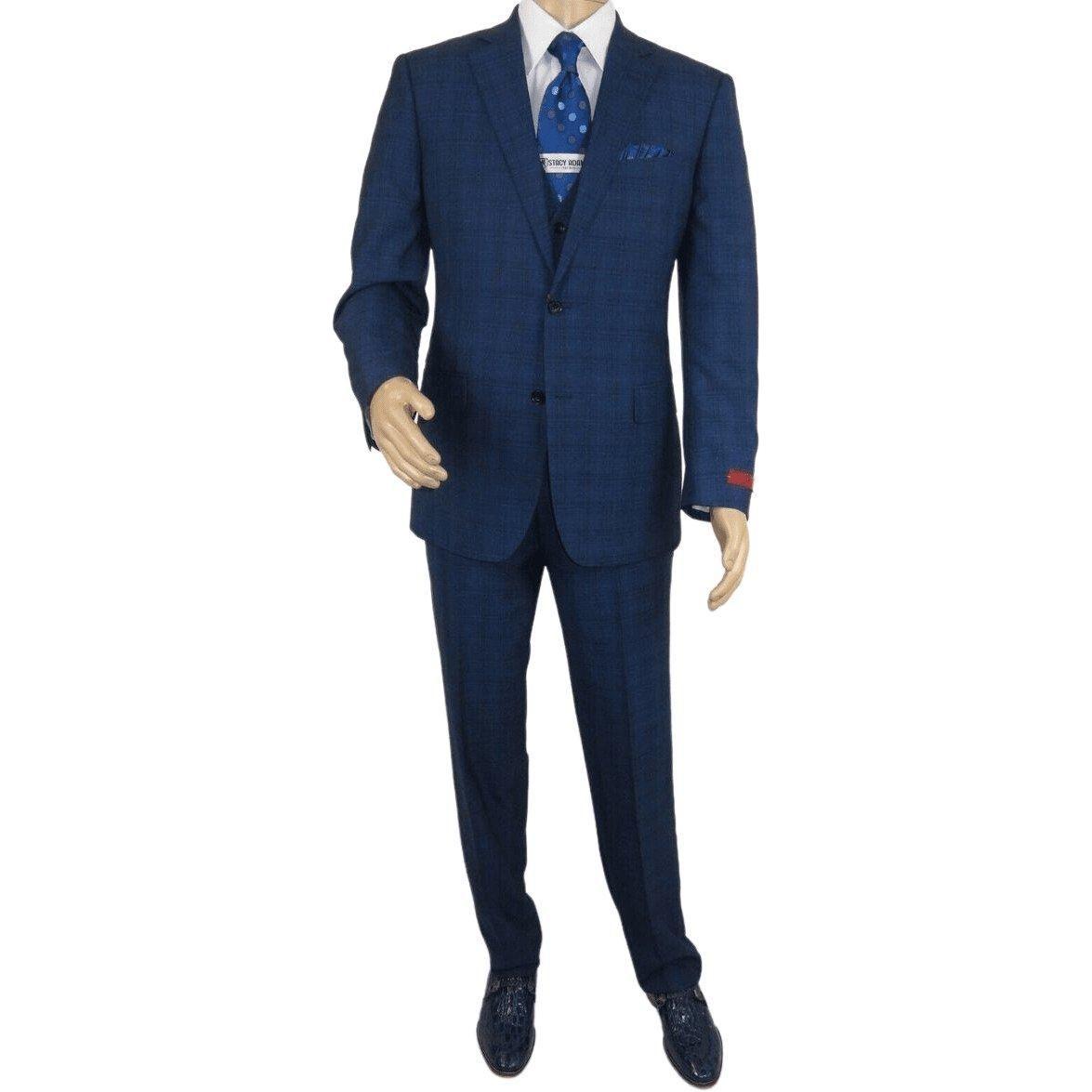 • Mens Renoir 3 Piece Vested Suit Glenn Plaid Notch Lapel Business 278-2 Navy Blue image 1