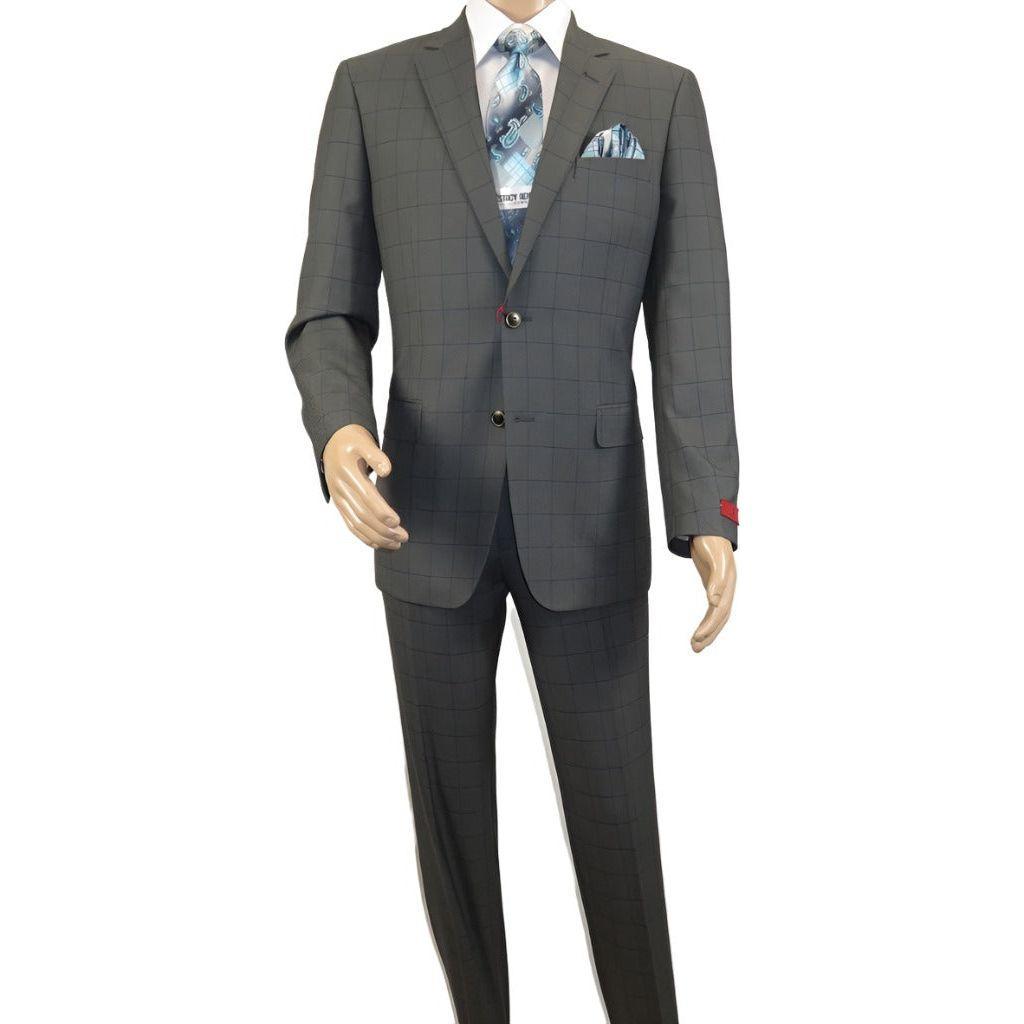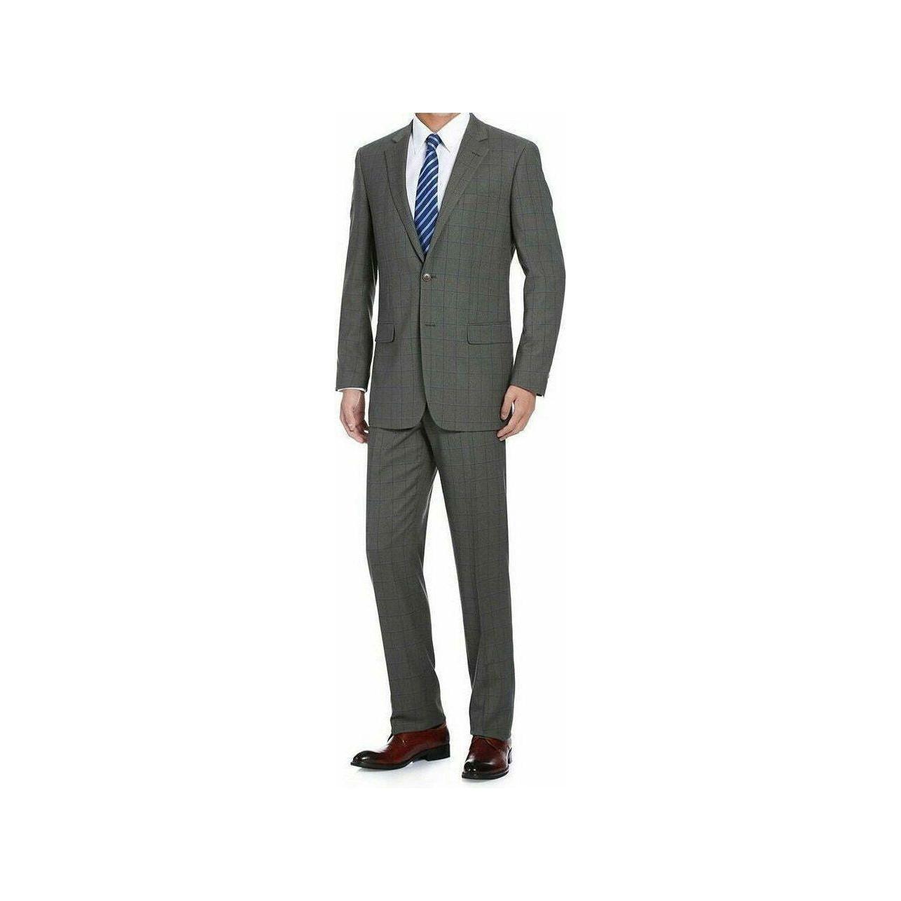 Mens suit renoir english window pane classic fit business 292 2 gray blue 189576