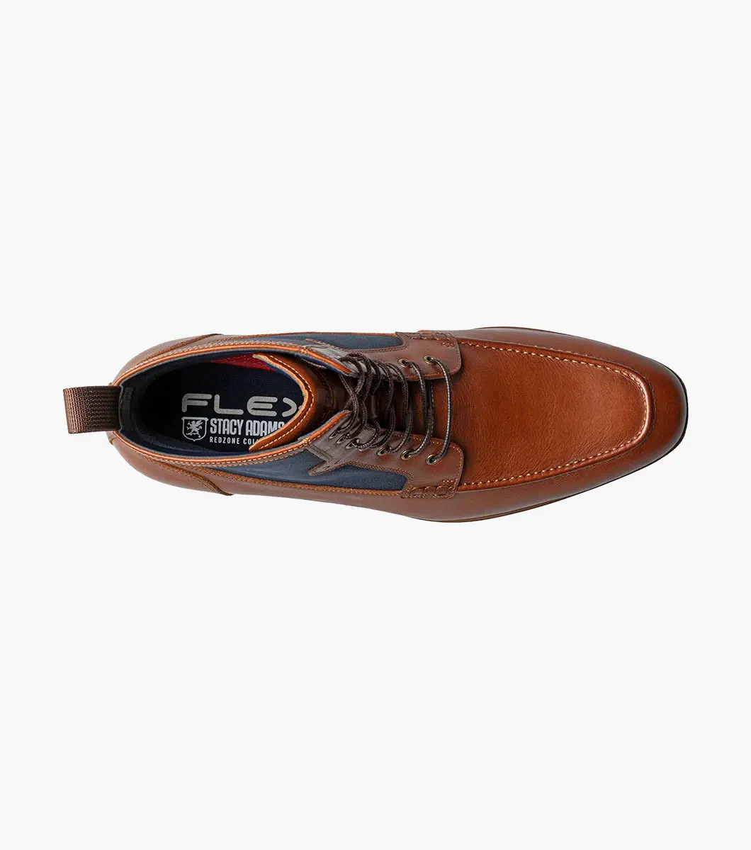 The Stacy Adams Brumley Moc Toe Lace Up Boot features a modern mix of materials, colors, and textures on its rich, hand-burnished upper. The versatile style is complemented by our FlexZone cushioned footbed and soft microfiber linings.